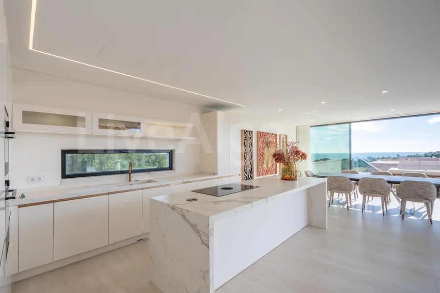 Spread over three meticulously designed floors, this villa redefines modern living with its innovative layout. The second floor is uniquely the main living area, maximizing the panoramic sea views and creating a harmonious flow between indoor and outdoor spaces.