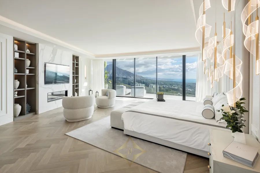 This architectural masterpiece boasts nine spacious bedrooms, each with its own en-suite bathroom. Distributed across four levels, the villa features double-height ceilings and floor-to-ceiling glass windows and doors, flooding the interiors with natural light and connecting seamlessly with its expansive outdoor spaces. The rooftop terrace and private terraces provide the perfect setting for al fresco dining, relaxation, and enjoying the Costa del Sol’s enviable climate.