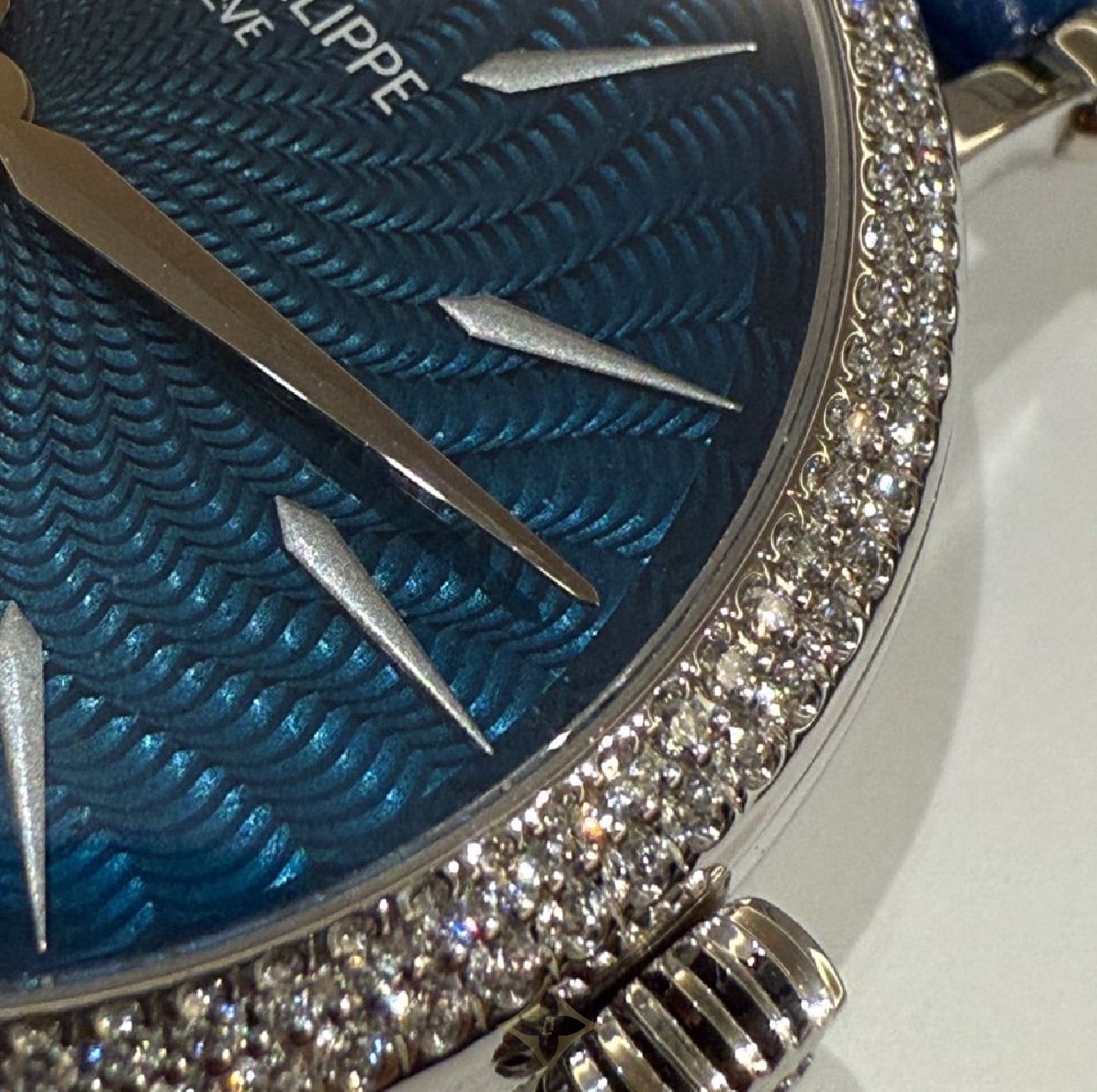 The star of the show is undoubtedly the deep blue sunburst dial. It’s not just about telling time; it’s about making a statement. The elegant white gold Breguet-style numerals and feuille hands are not mere markers but a testament to the meticulous craftsmanship that Patek Philippe is celebrated for. Every glance at your wrist reveals a timeless beauty that’s sure to draw admiration.
