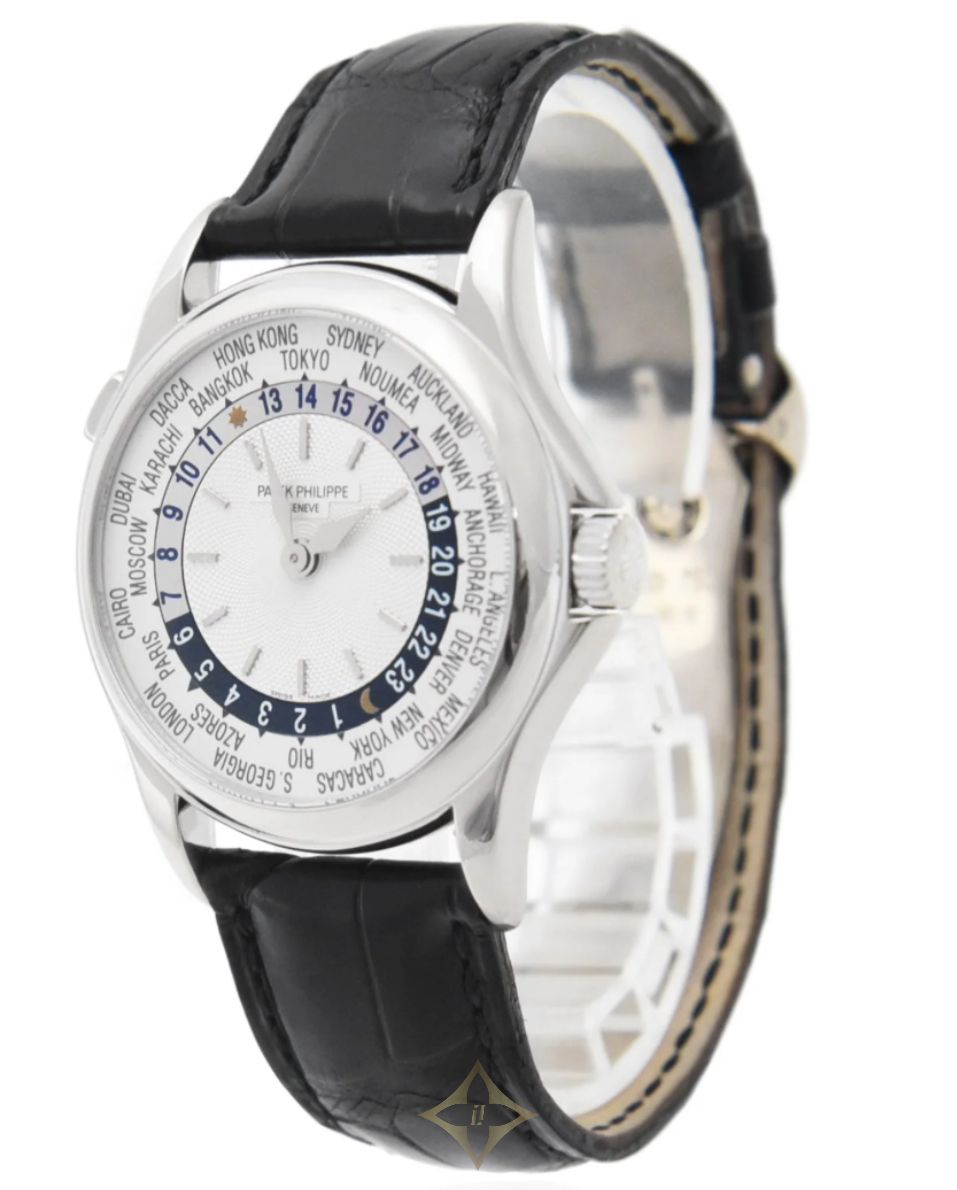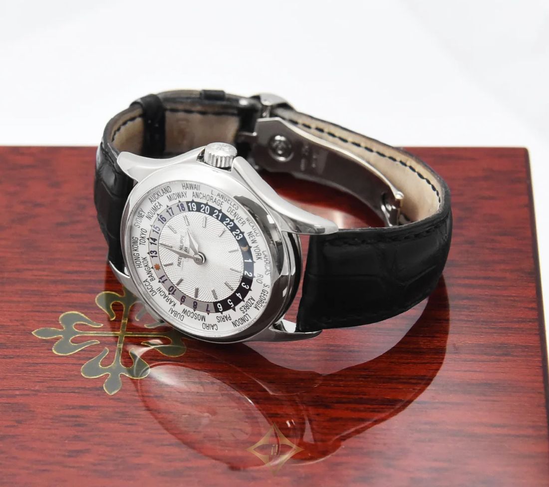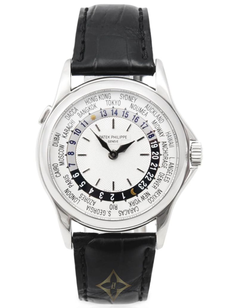In excellent condition, this Pre-Owned Patek Philippe Complications World Time has been well-preserved, showcasing its enduring quality and durability. The sleek white dial serves as a canvas for the intricate world time complications, illustrating Patek Philippe's commitment to precision and functionality. The leather strap adds a touch of sophistication, combining comfort with style, making it a versatile accessory for any occasion.