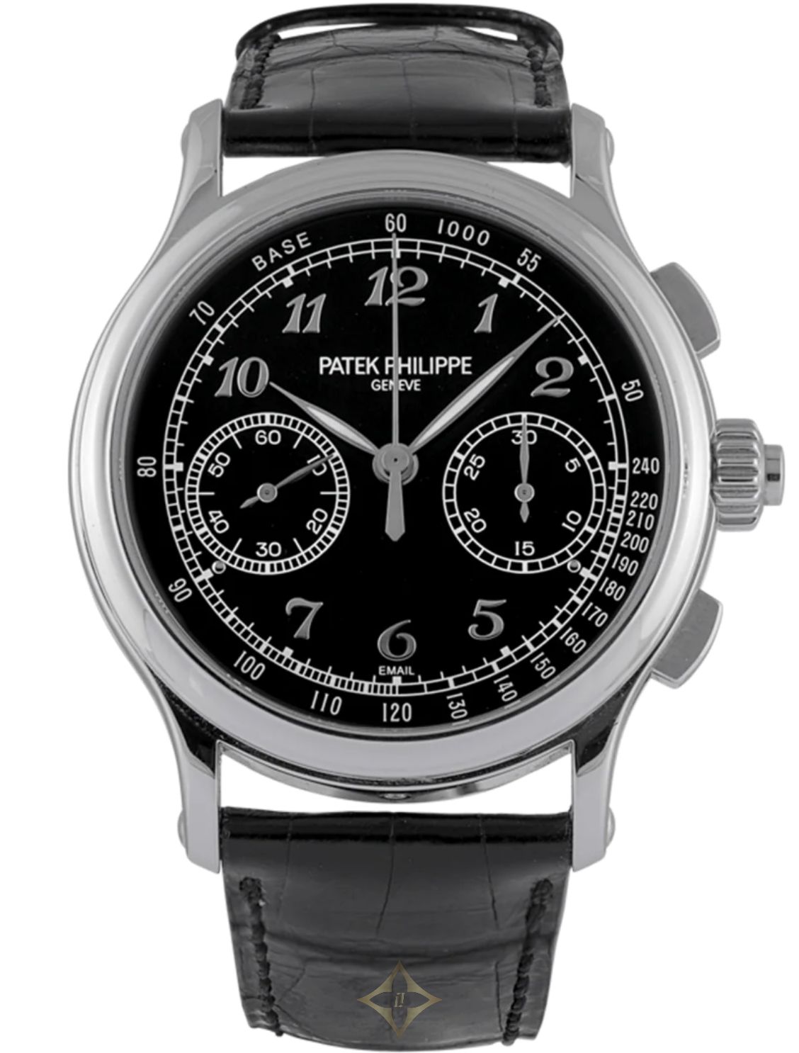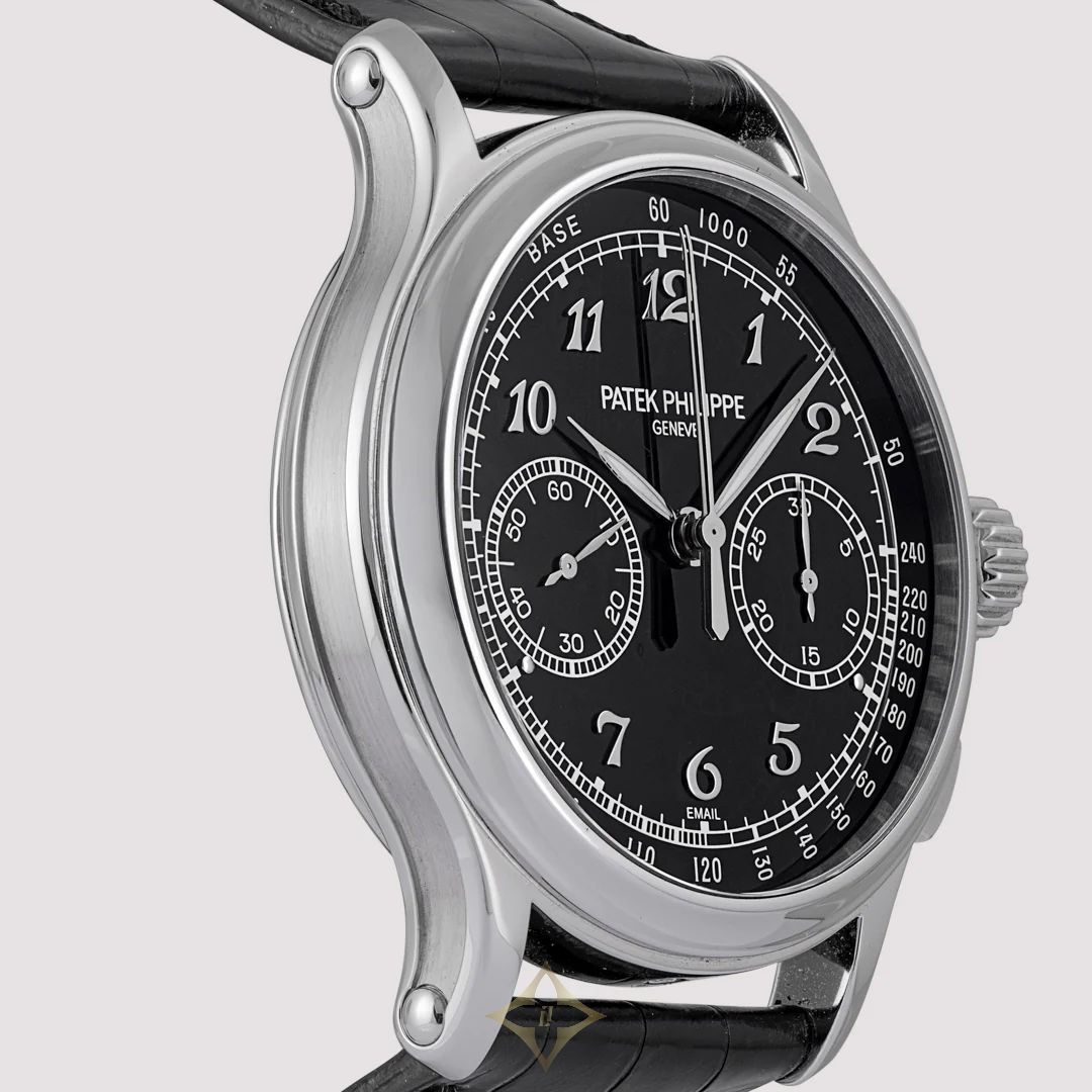 PHILIPPE PATEK Great Complications - Chrono Rattrapante 5370P-001 41 mm | Platinum | Black leather strap | Original box PRICE: €200,000.00 Description The prestigious Patek Philippe Nautilus 5370P-001 represents the pinnacle of sporty elegance and craftsmanship. This model stands out for its iconic design with a stainless steel case and a black enameled dial with two horizontal counters, "Breguet" number indexes. Animated by the CHR 29-535 PS movement, a two-stroke chronographic caliber controlled by the two classic buttons at two and four o'clock, plus that of the rattrapante function that is coaxial with the charging crown. It is a manual winding movement with a classic scheme with functions of the rattrapant chronograph sorted by a column wheel with horizontal clutch. Ref. 5370P-001 Product Specifications GENERAL Brand: PHILIPPE PATEK Movement: Manual Collection: Great Complication Gender: Man Reference: 5370P-001 Complications: Small Complications DIAL Diameter: 41 mm Material: Platinum Waterproofing: 30m/3atm QUADRANT Minuteria: Arabs Color: Black STRAP Material: Leather ——— PISA 1940 Via Montenapoleone 9, 20121 Milan VAT number 01036610150 REA NUMBER MI 285586 Phone: +39 02 762081 WhatsApp: +39 345 725 1814 Email: pisamail@pisa1940.com Flagship Store Via Pietro Verri, 7, 20121 Milano MI, Italy Phone: +39 02 76208300