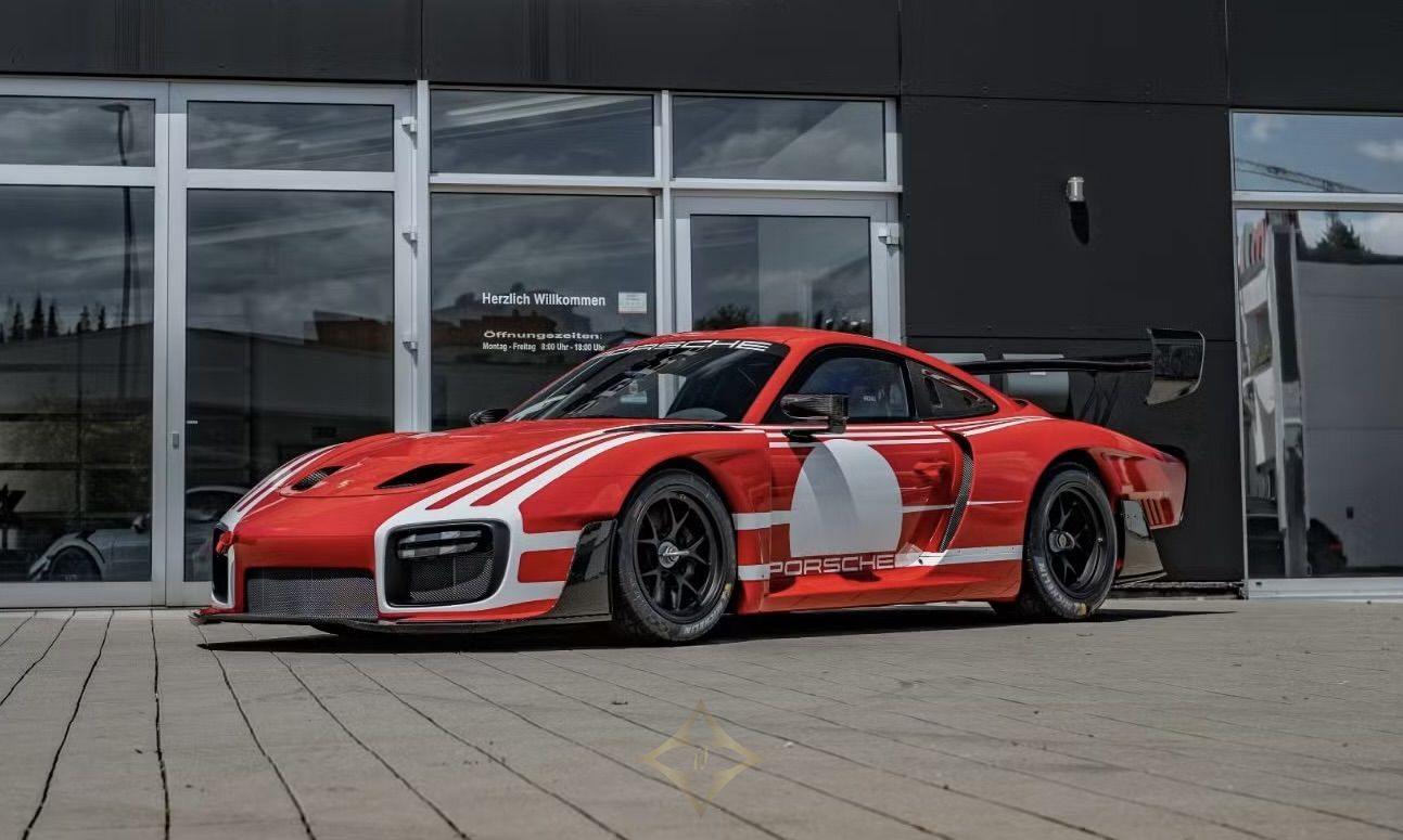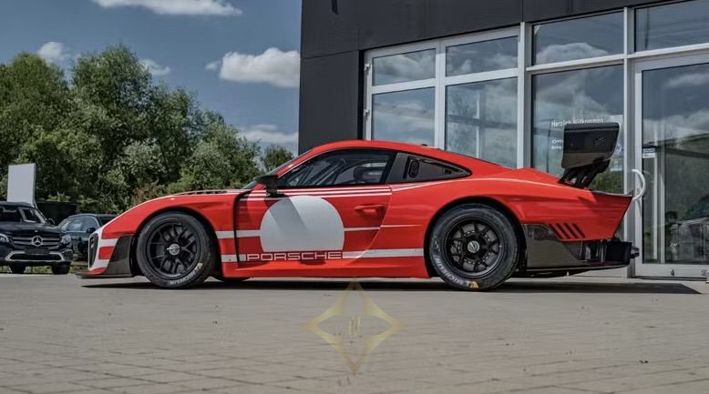The Porsche 935 Moby Dick in Salzburg Red is a rare and impressive sports coupe. Produced as a limited edition, only 77 units exist worldwide, with this model being one of three in the exclusive red color. This car is designed strictly for racing and not street legal, making it a unique collector's item. It features a lightweight hybrid aluminum-steel chassis combined with CFRP bodywork that includes rear side window panels and an aerodynamic rear wing derived from the 911 GT3 R. The integrated roll cage meets FIA Article 277 safety standards, complemented by a CFRP roof with an FIA-approved hatch for added protection.