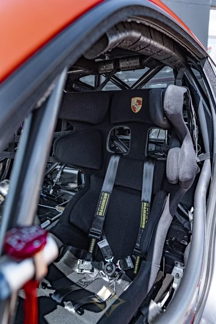 Its powertrain boasts a robust 3.8-liter gasoline engine generating 515 kW, paired with a 7-speed PDK gearbox offering quick gear shifts ideal for competitive racing environments. The vehicle includes advanced motorsport technologies such as adjustable camshaft phasing (VarioCam Plus), electronically regulated variable rear differential lock, and electro-hydraulic power steering for precise handling. Suspension components include MacPherson struts at the front and multi-link setup at the rear, fitted with high-performance spherical bearings and adjustable anti-roll bars.