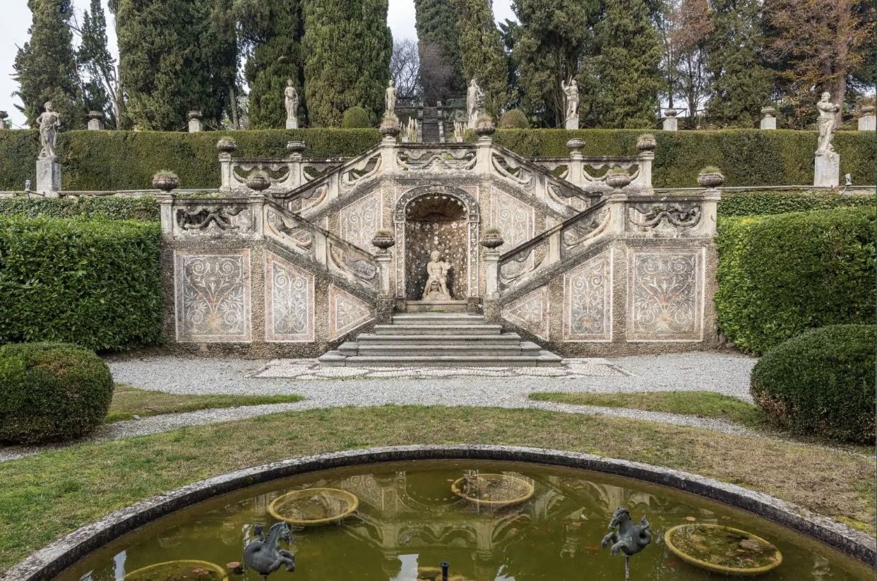 The property spans approximately 4,400 square meters, featuring refined and impeccably preserved interiors, encompassing 30 rooms and 20 bathrooms. At the heart of the estate lies an 18-hectare landscaped park, which includes a 19th-century English garden and an Italian garden with geometric flower beds and ornamental fountains. Winding paths, centuries-old trees, and artificial lakes provide rare and picturesque views, enriched by ancient statues and even a unique and captivating hedge maze. The swimming pool seamlessly integrates into this idyllic setting, offering an ideal space for relaxation in an exclusive atmosphere. The villa also boasts a private chapel, still adorned with period decorations and sacred artifacts, dedicated to one of the region’s most prominent noble families.