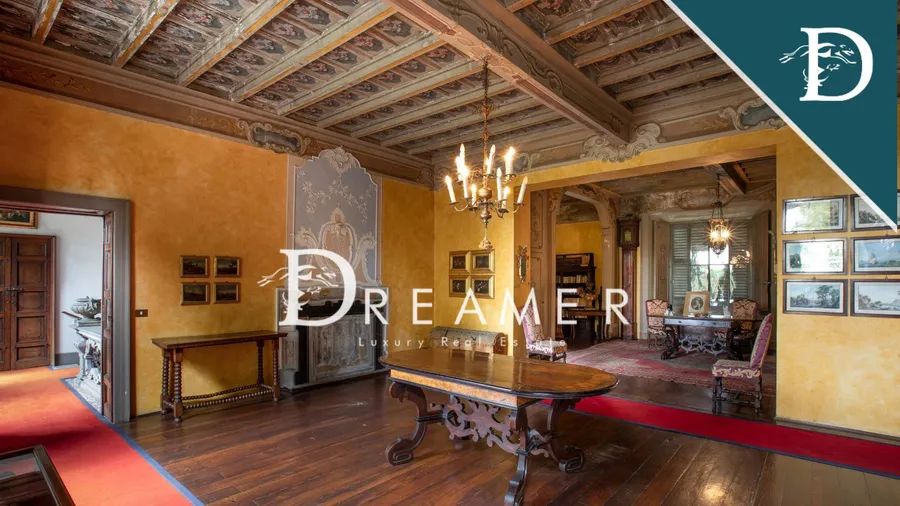 The interiors, steeped in history and charm, include spacious halls adorned with frescoes, original wood paneling, coffered ceilings, and antique terracotta floors. Every detail reflects the artistry and meticulous craftsmanship characteristic of the era, from the majestic stone staircases to the finely modeled stuccoes. The villa has a prestigious history, having hosted members of illustrious noble families. To this day, it retains its exclusive character, making it an ideal venue for prestigious events or a unique residence combining luxury and tradition. The property also includes outbuildings, currently converted into apartments, and additional annexes offering development opportunities.