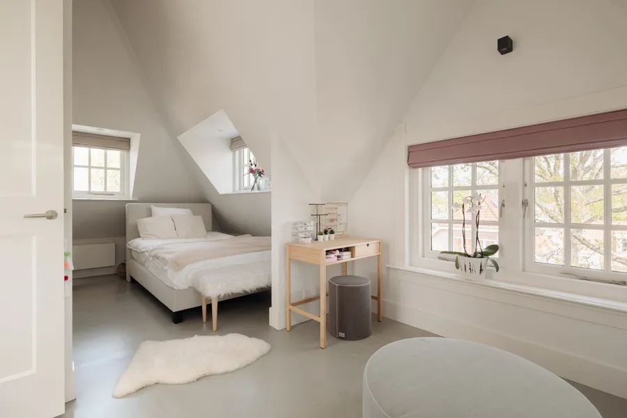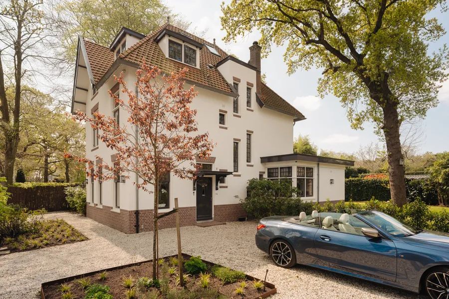 This stunning villa at Ruïnelaan 34 in Bergen NH, designed in 1912 by architect Jan Leijen, blends timeless charm with a nod to the village’s rich historical past. Leijen, known for his fusion of styles such as Jugendstil and the Amsterdam School, left his ‘architectural signature’ in the diamond-shaped patterns on the façades, visible in the villa’s gabled top.