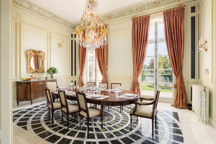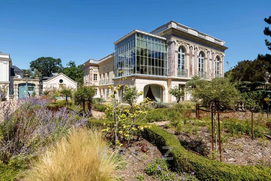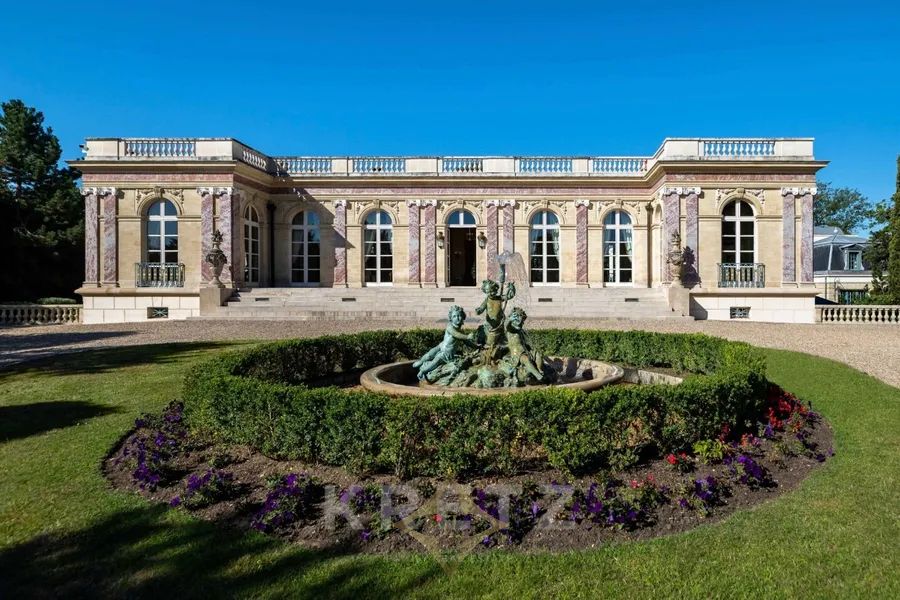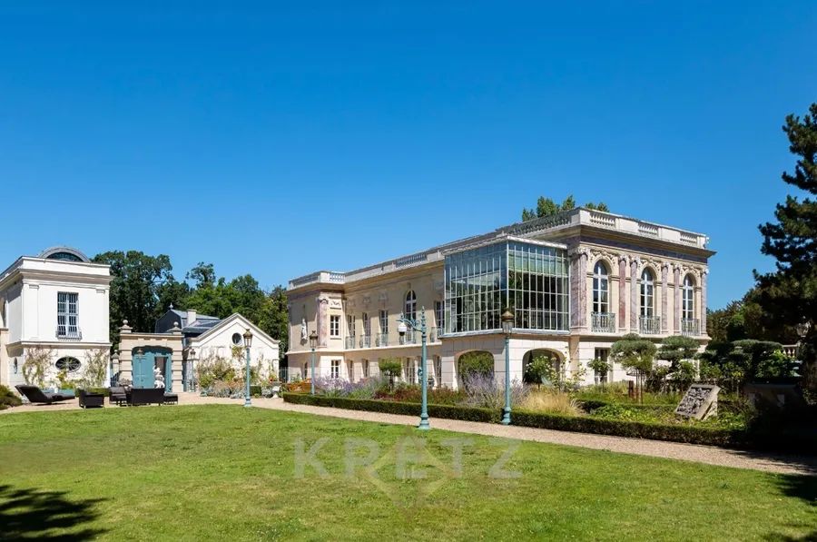 Nestled in the luxurious Ibis Parc du Vesinet, this palace inspired by the Grand Trianon, classified as a historic monument, offers 2000 m² of family and reception space spread over the basement, the ground floor and the ground floor . The estate includes the main villa with several reception rooms, 4 suites, a cinema, a games room, an indoor swimming pool and a squash court, a gym. A caretaker’s villa, staff accommodation, a 500 m² guest house with 4 suites, garages, all on immaculate and lush grounds of 7000 m². Built in the style of the Grand Trianon in 1900 by the owner Arthur Schweitzer, the Palais Rose was notably the home of the great poet Robert de Montesqiou from 1908 to 1921. And above all, General de Gaulle, on his way to take over the fourth armored division, stayed at the Hermitage du Palais Rose May 12 to 15, 1940. A plaque attached to the building and visible from rue Diderot commemorates this occasion.