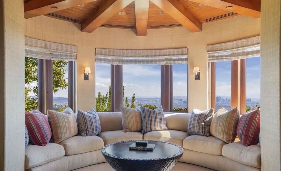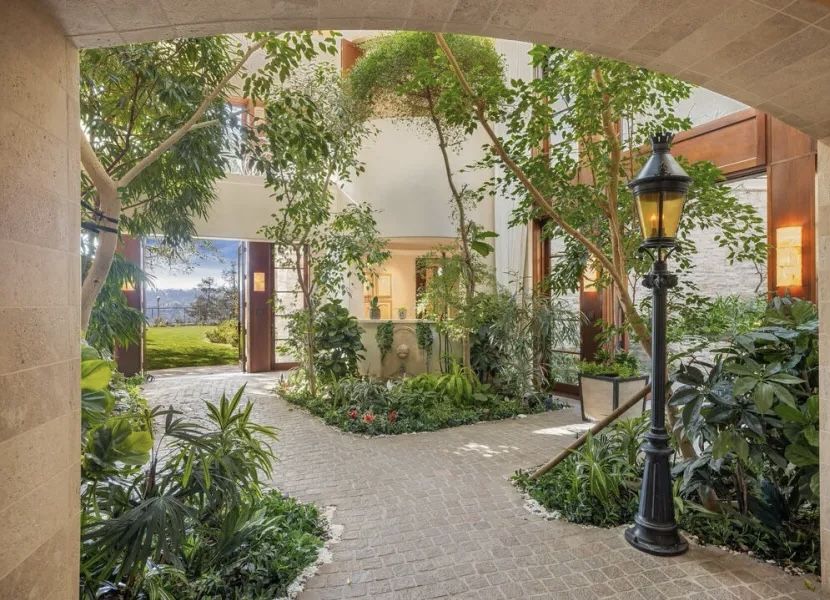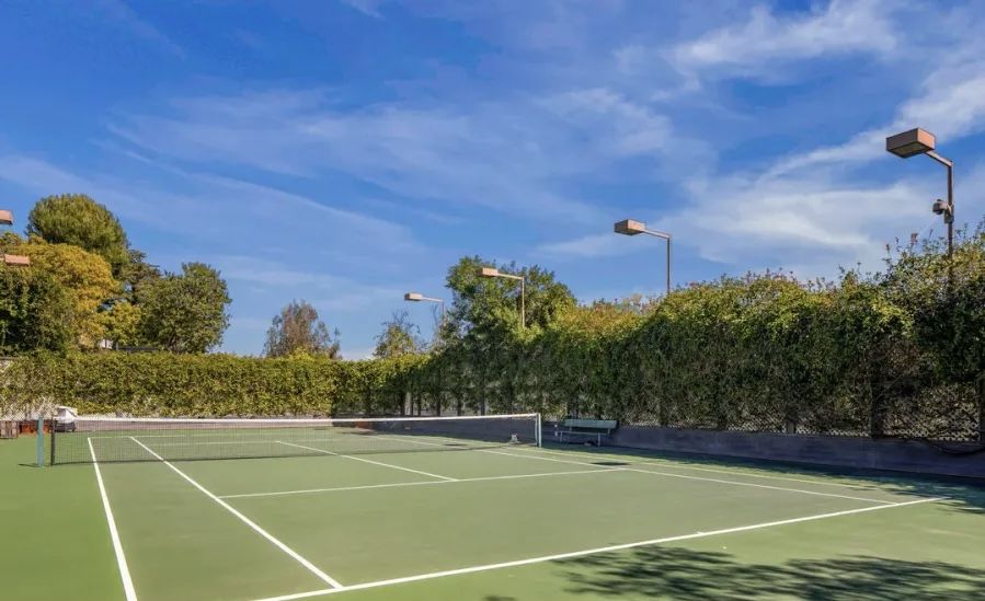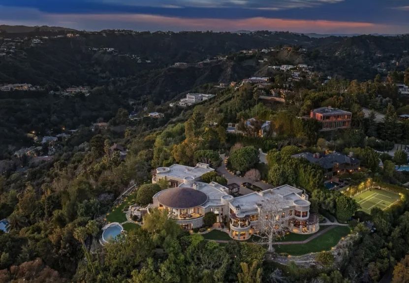 The Quincy Jones Estate - an extraordinary offering in prime lower Bel Air, sited on an approx. 2.3-acre promontory with sweeping 270-degree panoramic views. Custom built for one of the most iconic figures in music history, the estate is privately positioned behind gates at the end of a cul-de-sac, offering total seclusion with unobstructed vistas from the San Gabriel Mountains to the Pacific Ocean. A majority of the grounds are flat and usable, featuring a full-size lighted tennis court, circular motor court, rolling lawns, lush gardens, multiple verandas and patios, and an infinity-edge pool. Designed in collaboration with renowned architect Gerald ”Jerry” Allison, FAIA celebrated for his global luxury hospitality work the residence was conceived as a personal retreat, merging resort-inspired design with bold scale and refined finishes. The circular central wing anchors the home, encompassing a grand living room with adjoining library, bar, and terrace. A sun-filled double-height atrium connects to a wine bar, tasting room, and cellar, flowing into an indoor garden. A game lounge and cabana open directly onto the pool terrace, completing the resort-style [hidden information] east wing houses the expansive primary suite - a private sanctuary with a luxe bedroom, spa-style bath, multiple walk-in closets, gym, den, and private balcony. This wing also includes a formal dining room, gourmet kitchen with butler’s pantry, family room, and staff quarters. The west wing features three additional guest suites, including a junior primary with its own living room, dual bathrooms, walk-in closet, and terrace. Additional amenities include a state-of-the-art screening room, a professional office with reception area, a dedicated security office, and a gallery. The home is serviced by an elevator and multiple staircases, one in each wing. With a rich cultural legacy, this iconic estate has welcomed Hollywood royalty, global dignitaries, and legendary artists. Just minutes from Sunset Boulevard, it stands as one of the most exceptional view estates in all of Los Angeles offering rare privacy, pedigree, and scale.