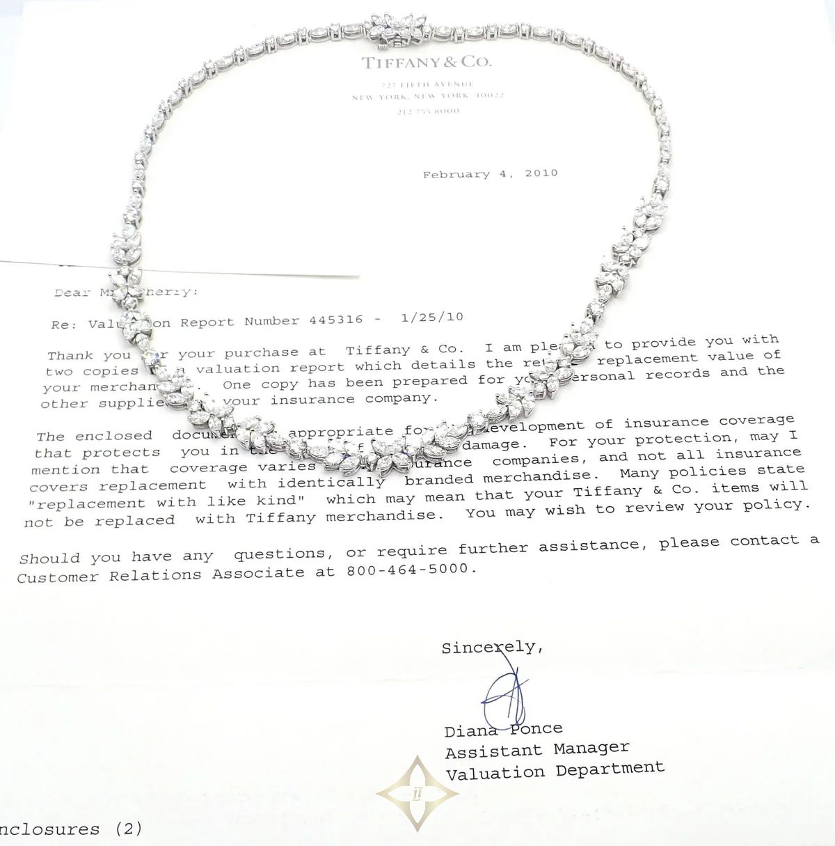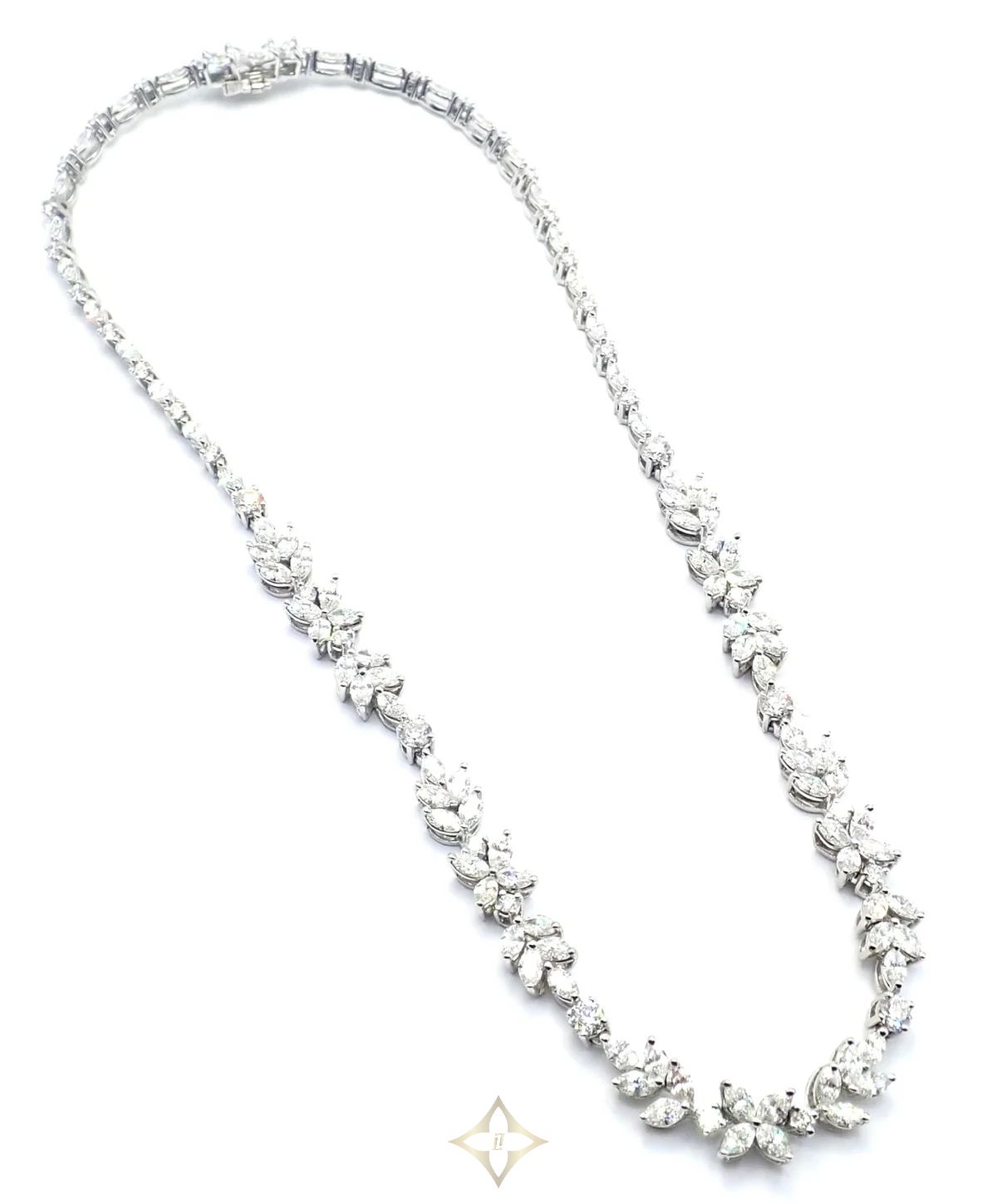 Tiffany & Co Victoria Platinum 15.92ct Diamond Mixed Cluster Necklace Paper TIFFANY & CO. Price: $93,100.00 Description About This Piece: Tiffany & Co’s Victoria Platinum Diamond Mixed Cluster Necklace exudes timeless elegance with 15.92 carats of lustrous diamonds. Intricately set in platinum, its floral-inspired clusters combine brilliant-cut and marquise stones for a captivating sparkle. Meticulous craftsmanship and refined design showcase Tiffany’s legendary sophistication, making this piece a truly treasured keepsake. This necklace comes with Tiffany & Co. box and Replacement Valuation from 2010. Retail Price: $153,000 plus tax. Metal: Platinum Measurements: Length: 16.25" Width: 8mm Weight: 51.5 grams Stones: Round Brilliant Cut Diamonds VS1 clarity, E color total weight approximately 3.24ct Marquise Shape Diamonds VS1 clarity, E color total weight approximately 12.68ct Total weight off all the diamonds is approximately 15.92ct Hallmarks: Tiffany & Co PT950 24104273 ——— Fortrove (Fortrove, Inc - Shop Lucky, Inc) 148 East Street Road, Unit 337, Feasterville, PA 19053 United States, Pennsylvania WhatsApp: +1 267-438-7307 Email: sales@fortrove.com