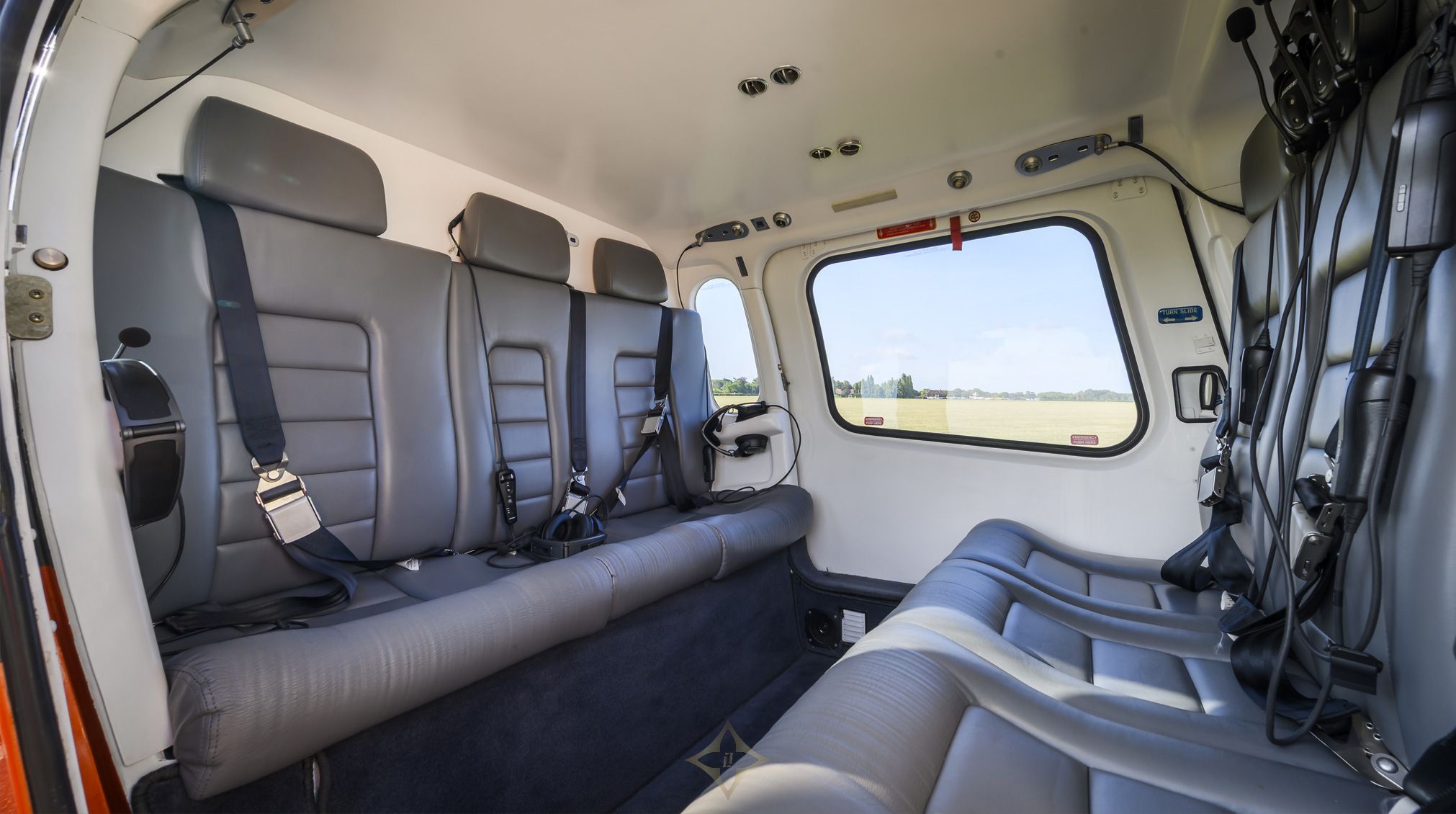 • Three (3) Forward facing seats with 3-point shoulder harness with inertial reels and black colored safety belts for all passenger seats, seat customization as currently installed on the HELICOPTER.