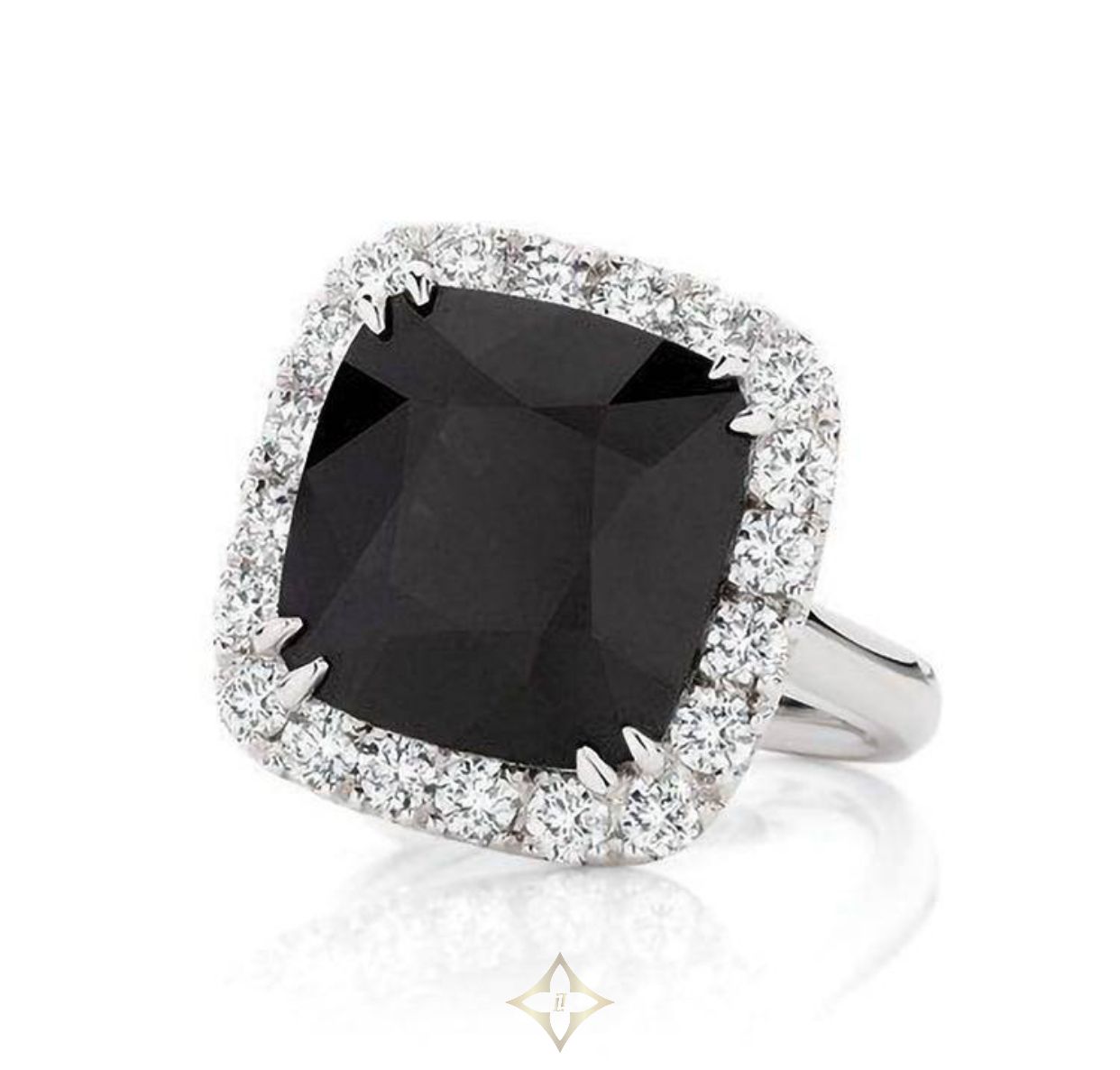 14.1ct Black Sapphire in a double four-prong setting and fine band.