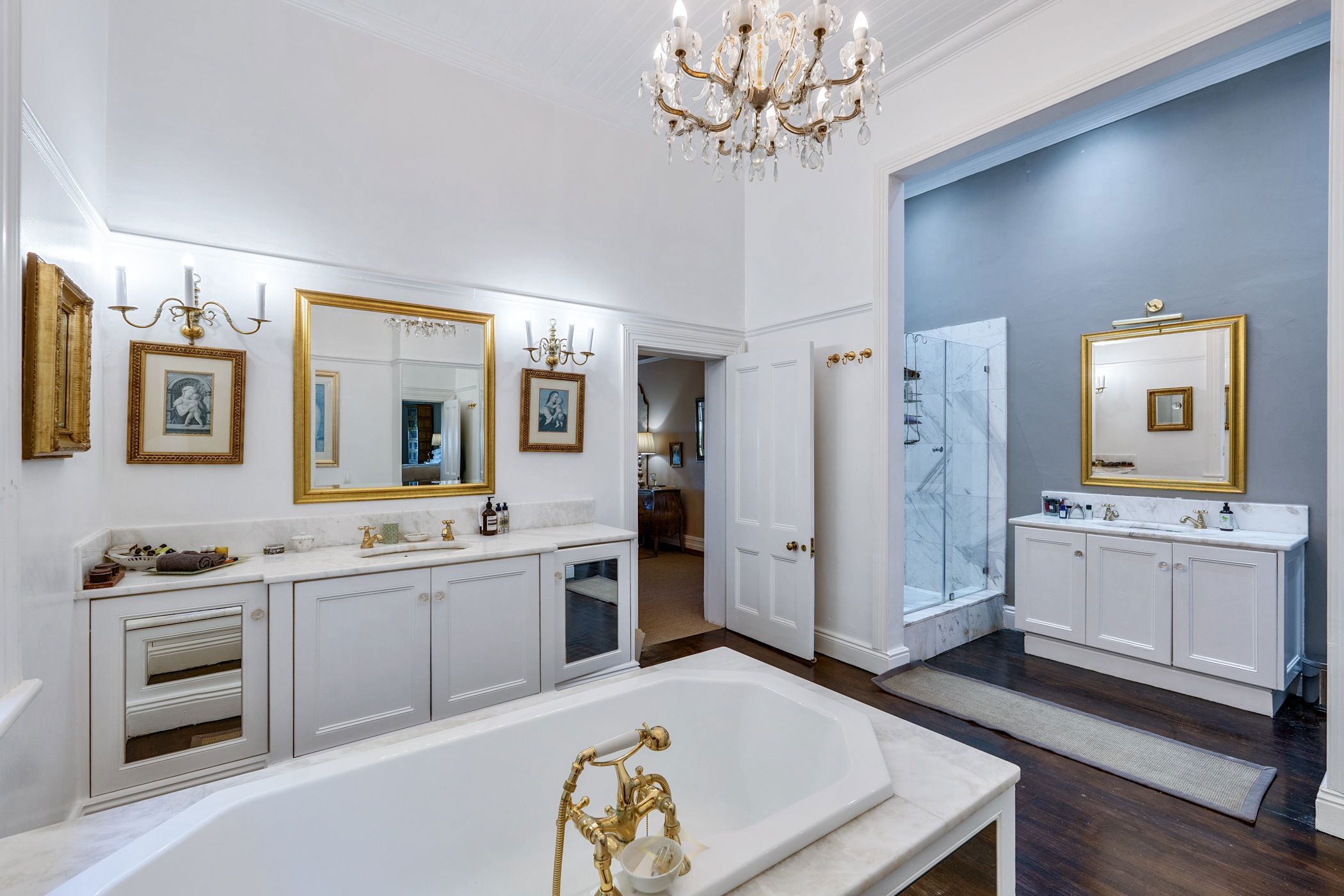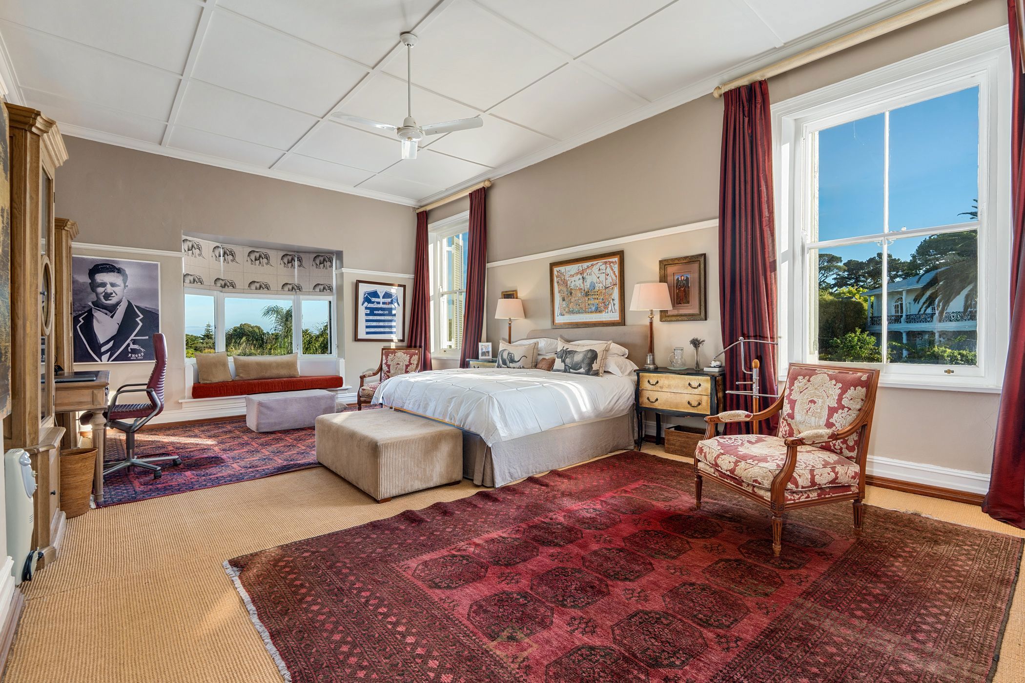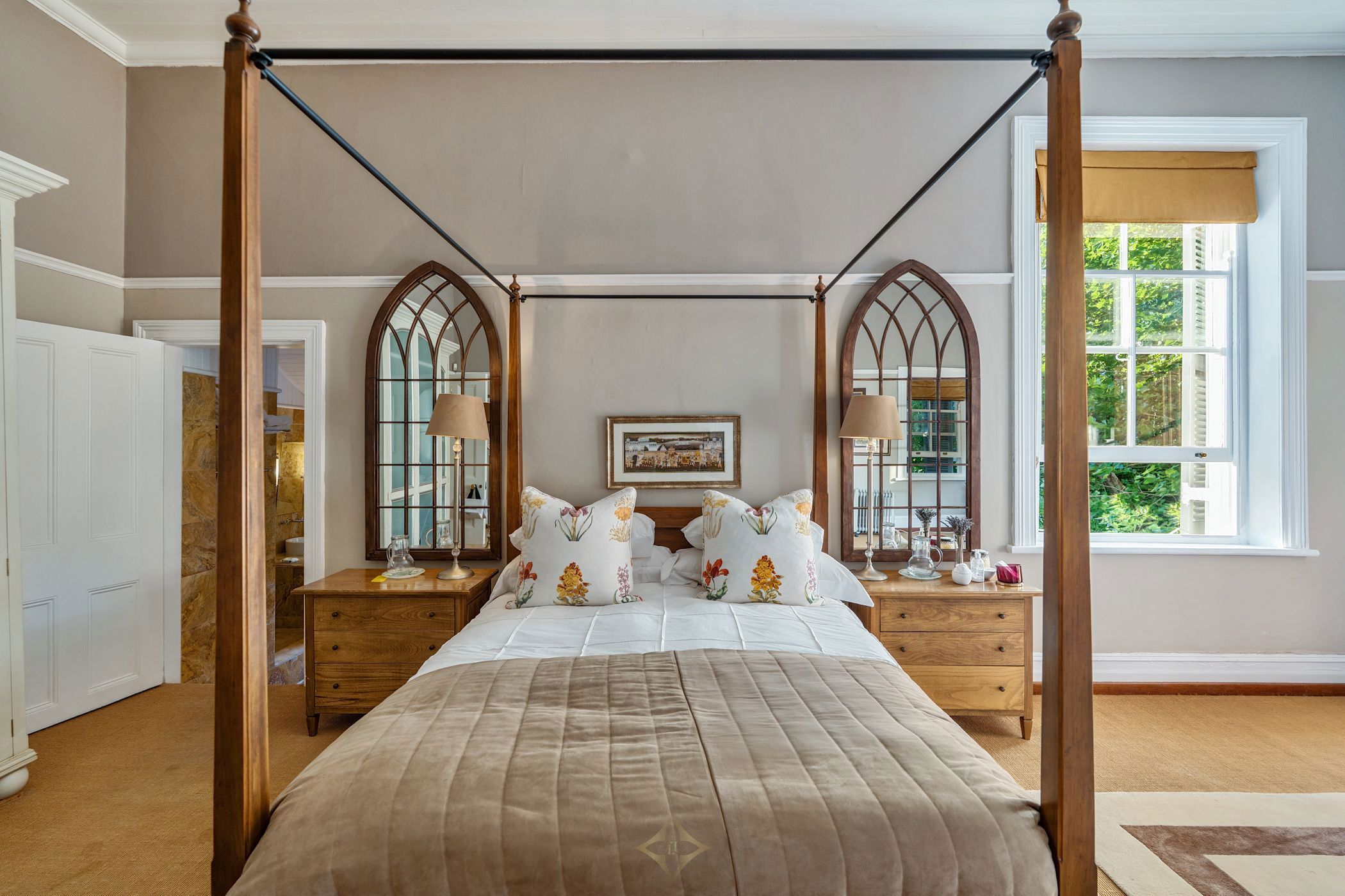 Owned and carefully maintained by the same family for more than twenty years, this home combines period character with comfortable living. Inside, original teak floors, sash windows with shutters, and solid wooden doors with brass fittings speak to the home's heritage. High, painted ceilings, chandeliers, and a double-volume entrance with a brass chandelier create an atmosphere of quiet elegance.