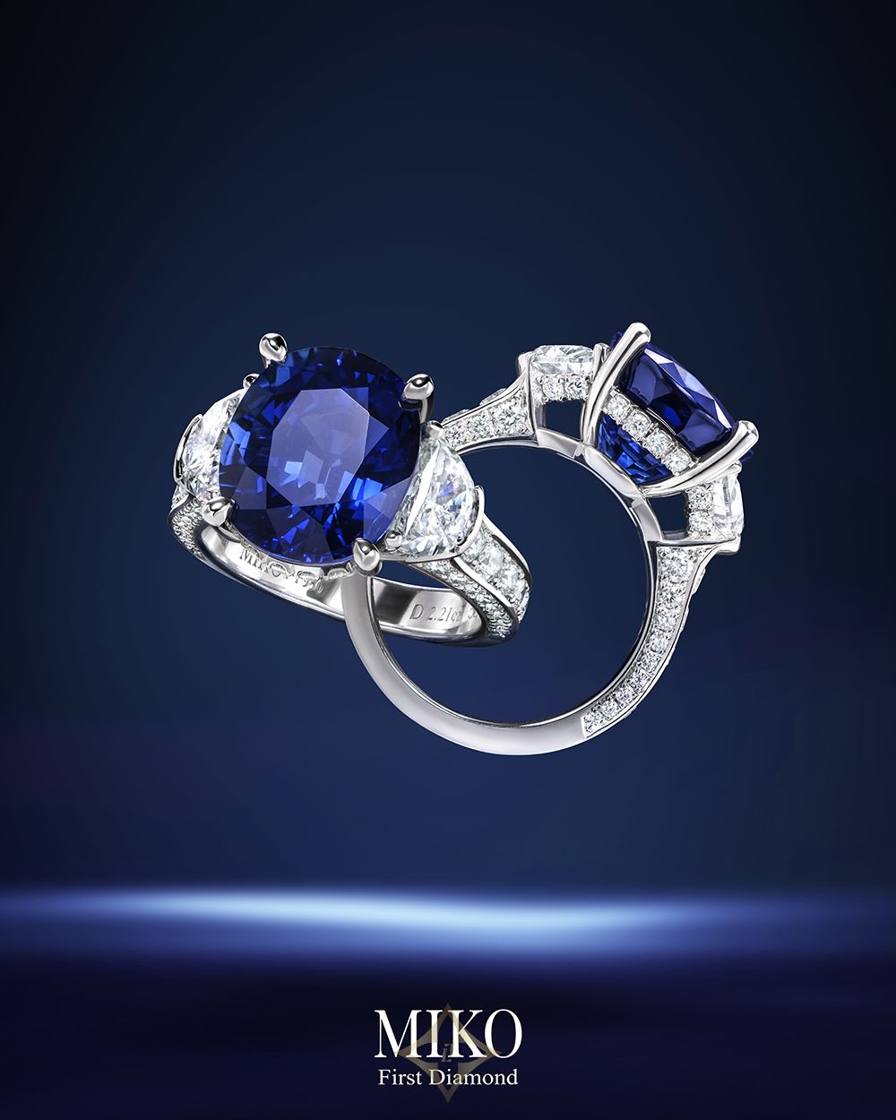 Main stone: Blue sapphire, diamond