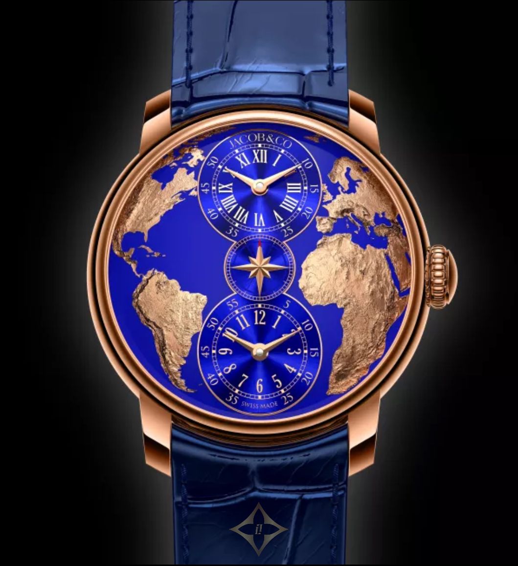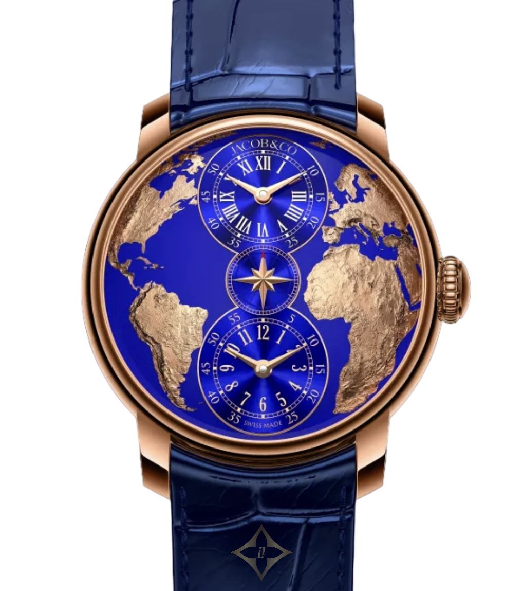 For Jacob Arabo, creation is a personal, emotional journey. And this creation holds a special place in his heart. Therefore, The World Is Yours Dual Time Zone transcends being just a two-time zone watch with separate hours and minutes. It surpasses being a mere piece of exquisite craftsmanship with its stunning domed dial depicting the Earth as seen from above. It stands as proof that a father’s love can be the key that unlocks the world, making it truly yours.
