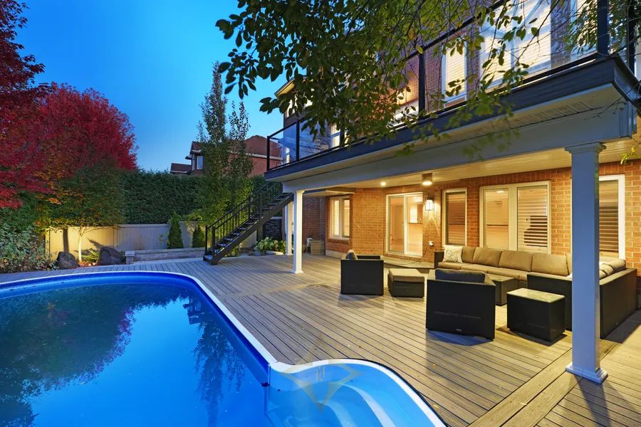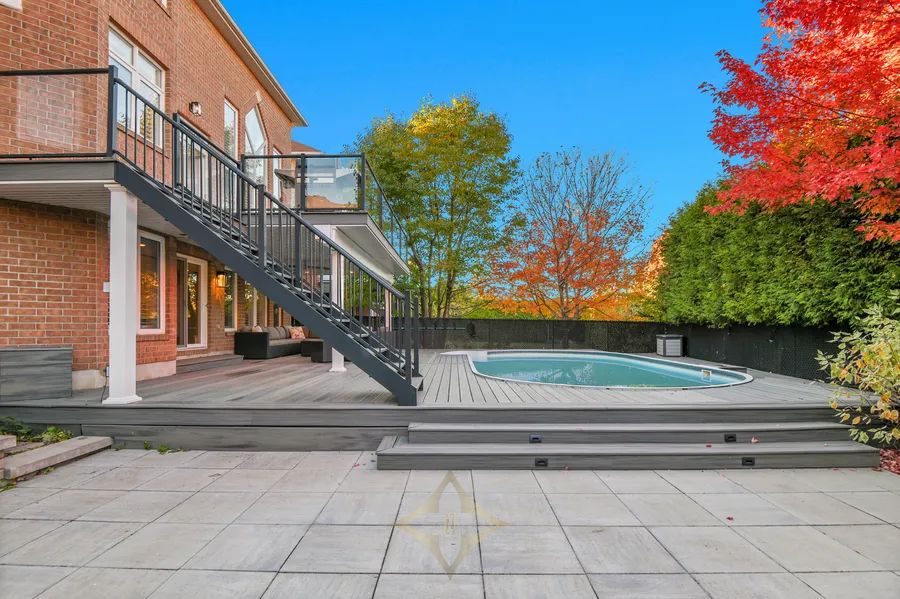 The walkout lower level is ideal for entertaining or multigenerational living, offering a large recreation room with kitchenette / wet bar, guest bedroom with its ensuite bathroom and direct access to the covered terrace and pool area. There is lots of space for storage, as well as room for a home theatre setup or fitness room.