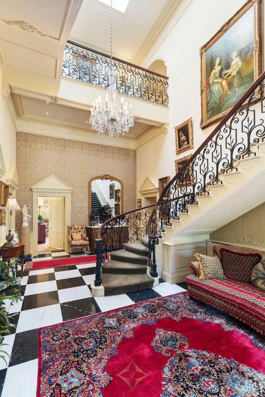 Boasting over 10,000 sq. ft. (929 sq. m) of accommodation, the home offers generously proportioned rooms with soaring ceilings and ornate cornicing. Beyond the house the grounds provide absolute privacy and tranquility with mature landscaping and beautiful recreational amenities, including an all-weather tennis court and a large indoor heated swimming pool housed in a separate pool pavilion.
