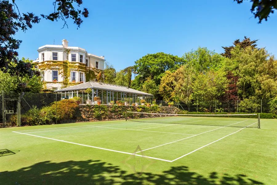 The gardens which extend to 2.8 acres approx. enjoy panoramic views of Killiney Bay across to Bray Head encompassing the North Wicklow Mountains. The grounds consist of a series of rolling lawns, raised terraces, mature plants and shrubs, gravelled pathways. There is an all-weather tennis court, heated indoor pool with solarium and bar area. Production allotment area and greenhouse. The elevated position provides spectacular views from different vantage points throughout the gardens. There are various patios and raised seating areas from which to take in the views. Off the kitchen area there is an enclosed courtyard with attractive granite faced out- building with storeroom and boiler house. In addition a wonderful sheltered terrace enjoys views of the Bay.
