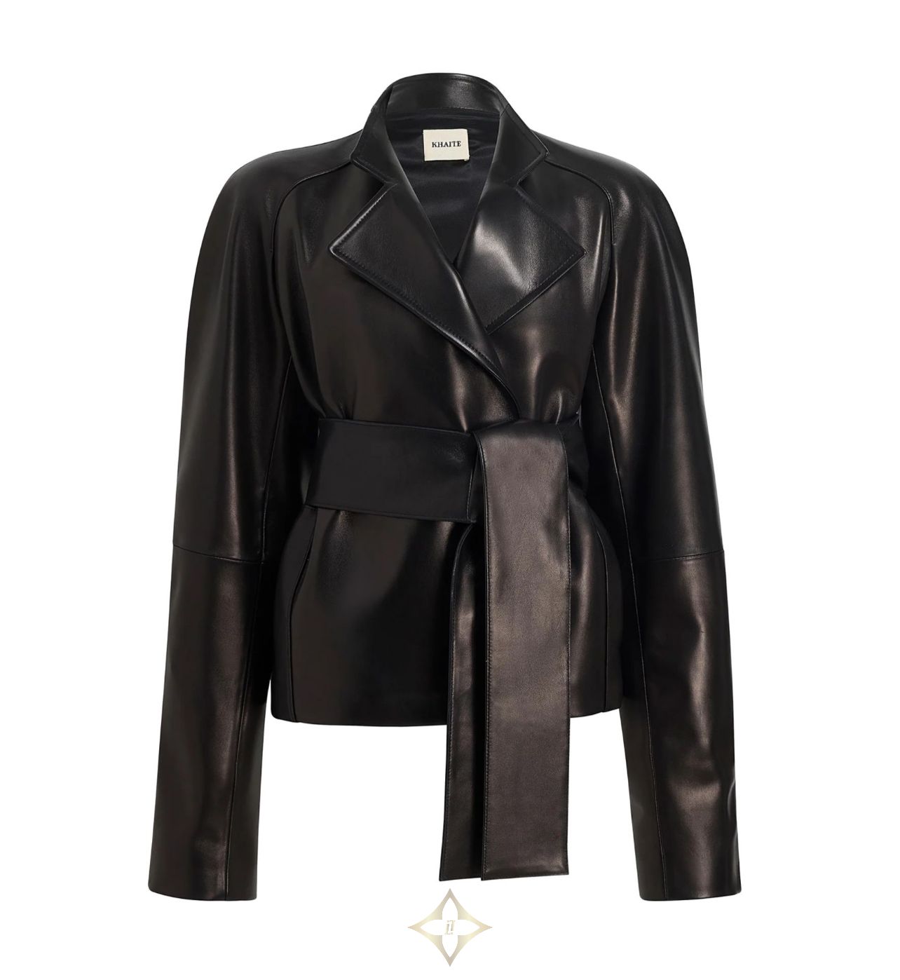 Discover Khaite's Edith leather jacket, crafted from glossed leather for a sleek look. This regular fit jacket features a high neck and long sleeves, with a chic bow fastening. Its short length and wraparound style add versatility, making it perfect for both casual and refined occasions.