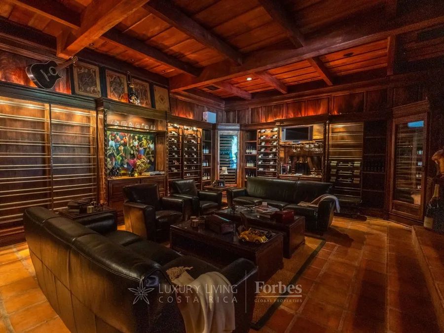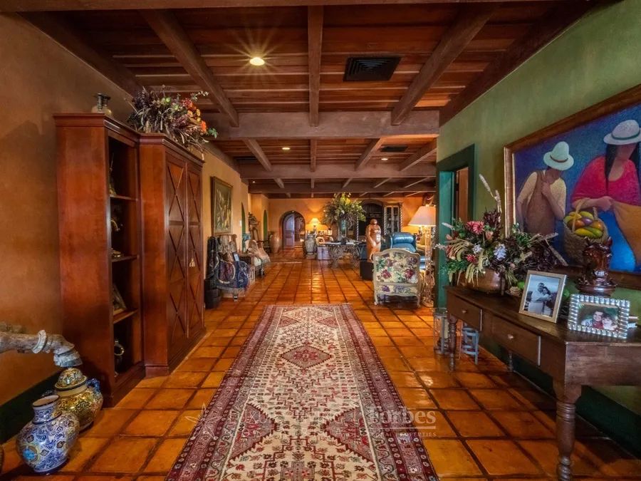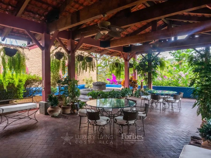 This spectacular hacienda style mansion was designed for private entertaining. It is located at 800 meters over sea level in the beautiful town of San Isidro del General, at about one hour distance from the beaches of Dominical, in the South Pacific Coast of Costa Rica. The main house is surrounded by mature trees, colorful bougainvilleas, and all kinds of palm trees and lush tropical gardens.