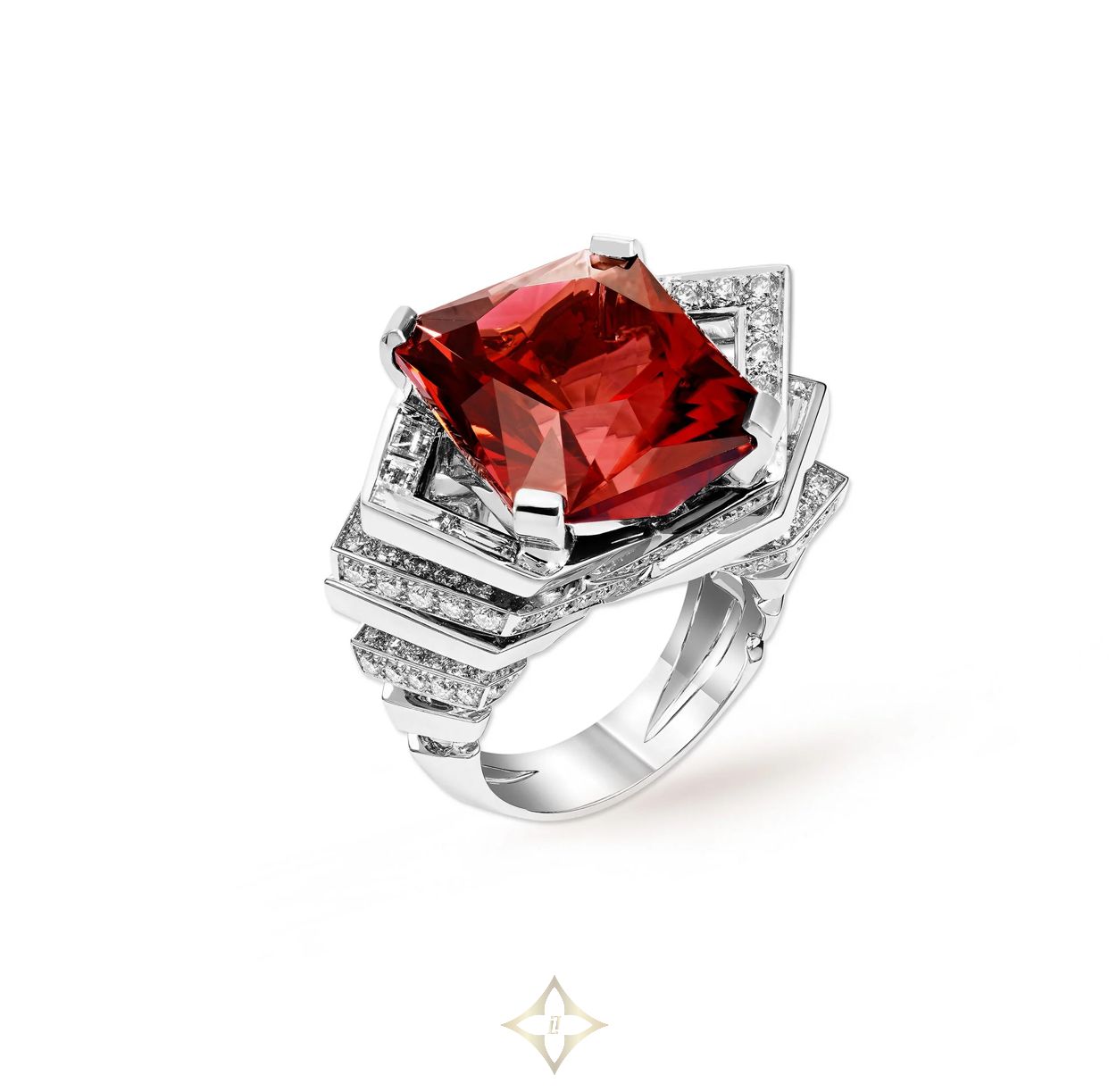 750 white gold, red tourmaline, diamonds