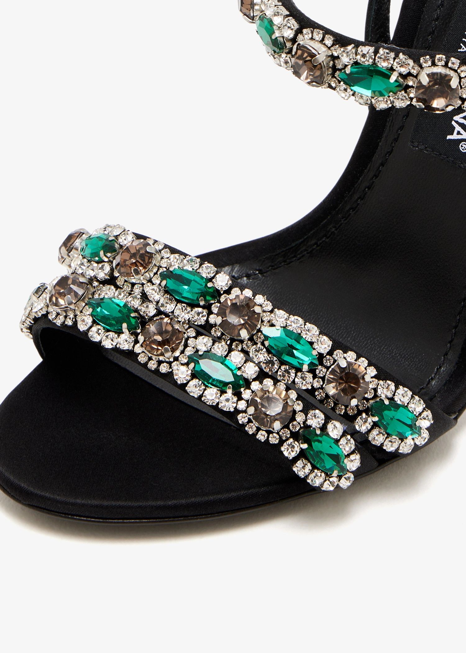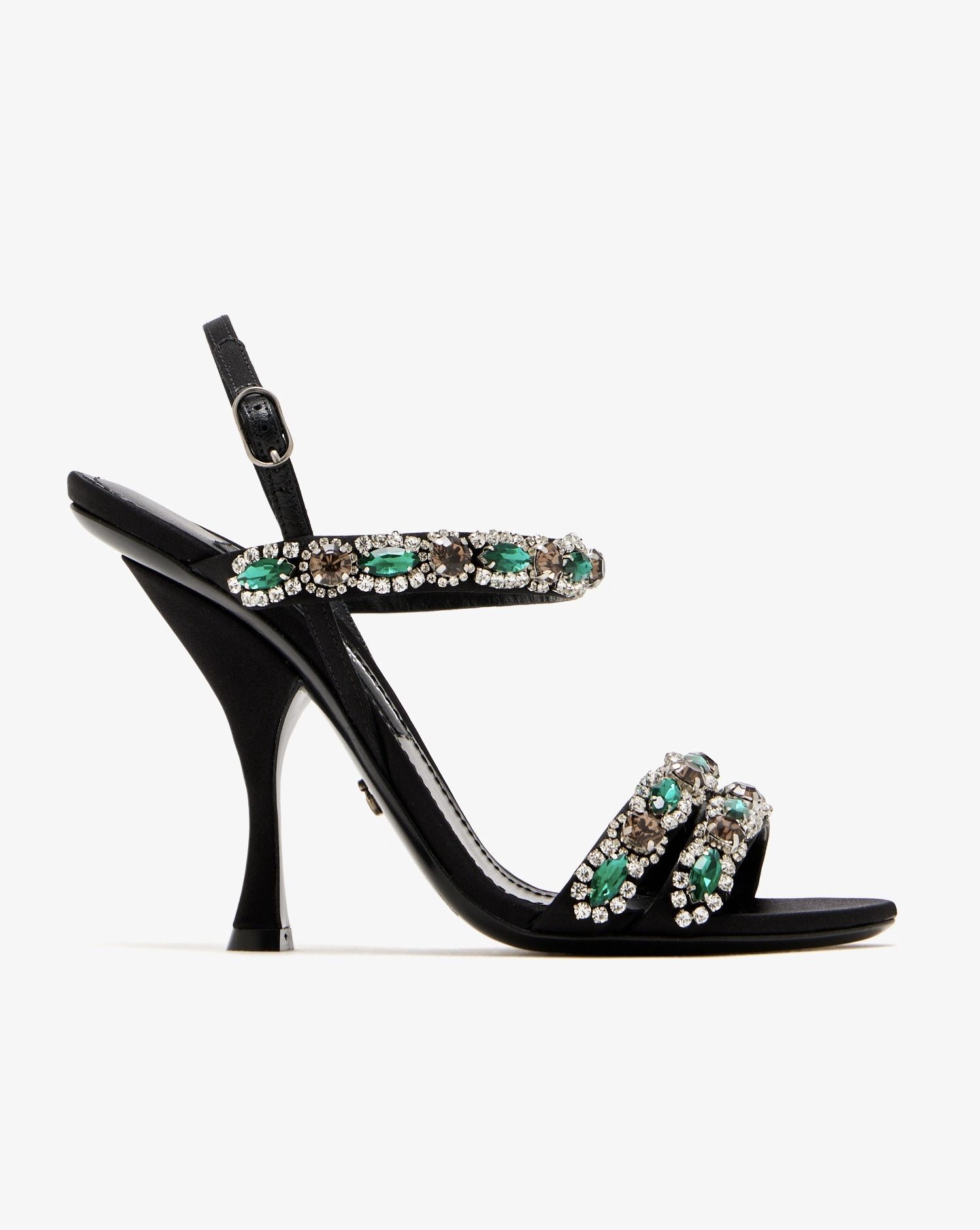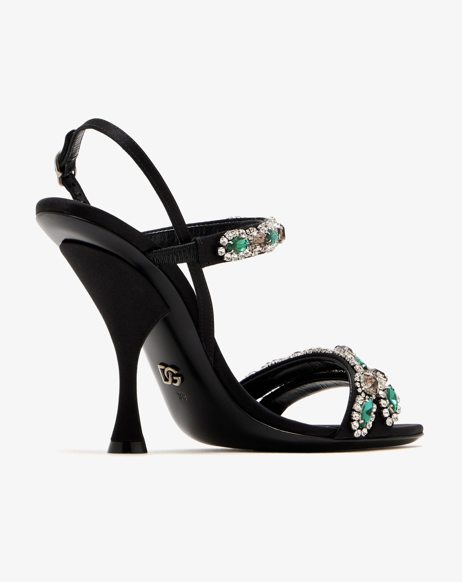 Dolce&Gabbana know how to do opulence right and these sandals stand tall as a testimony. Featuring dazzling rhinestones on the vamp and ankle straps, this pair is built atop a sculptural stiletto heel.