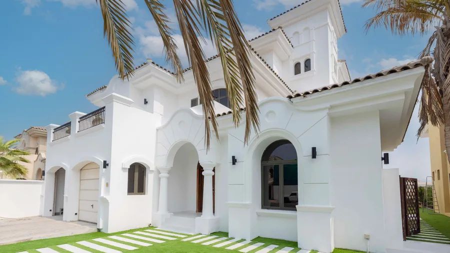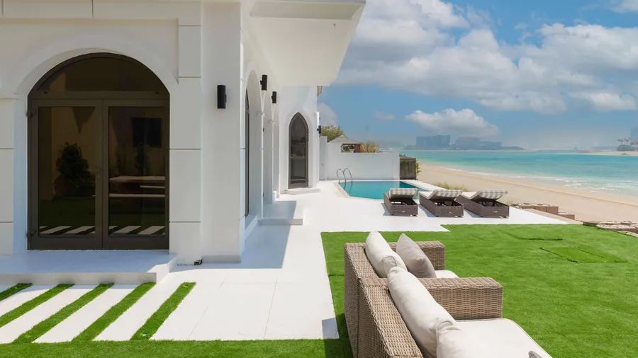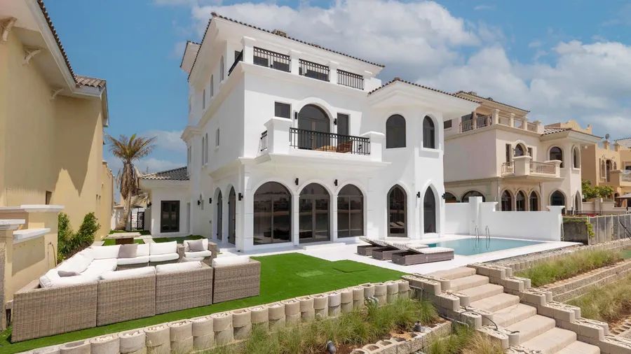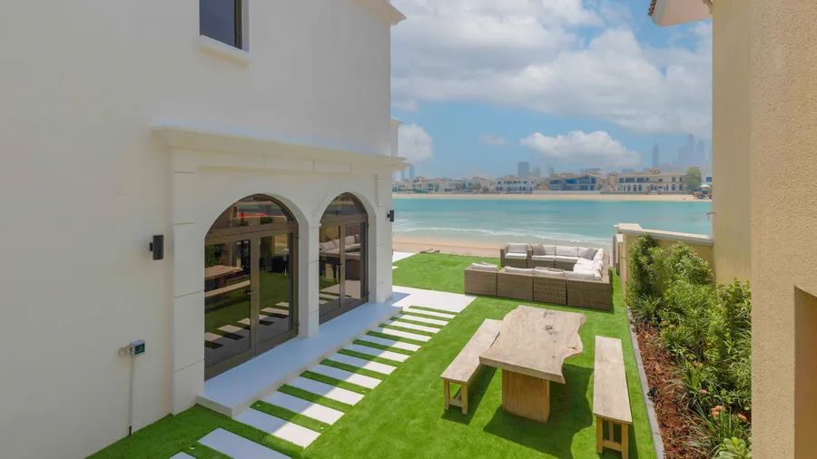 This five-bedroom, Garden Homes villa on the Palm Jumeirah is a tranquil beachfront sanctuary. Totalling 6707 sq. ft., the home is a coveted address overlooking the sea, offering unmatched family-friendly living.
