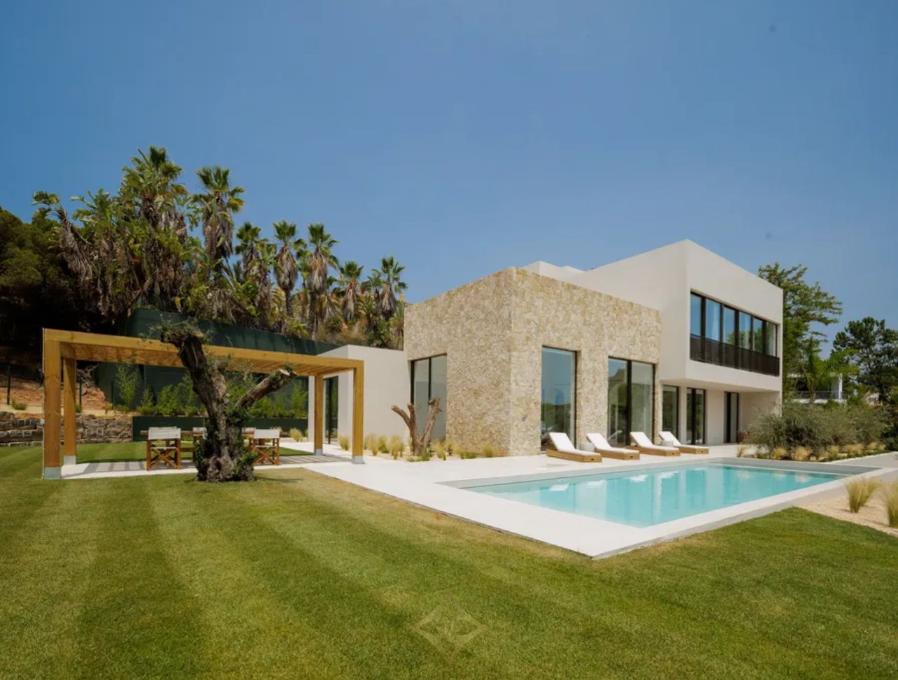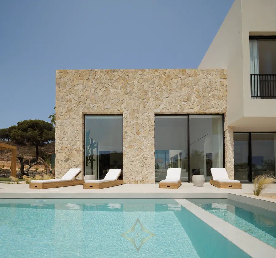 Discover luxury in the heart of Quinta do Lago with this stunning newly-built T4 villa, set on a 1,305m² plot. The property beautifully blends modern architecture with traditional elements, creating bright interiors and spacious areas that promote comfort.