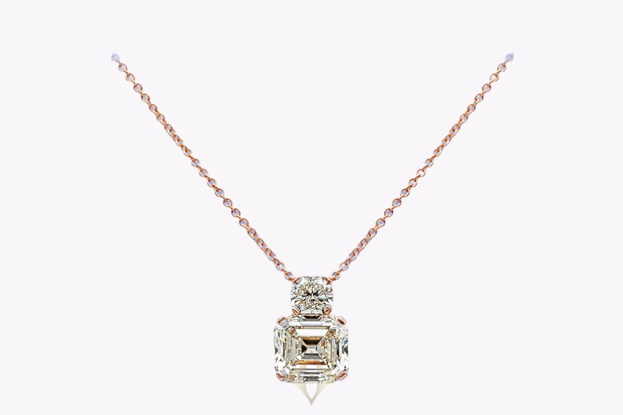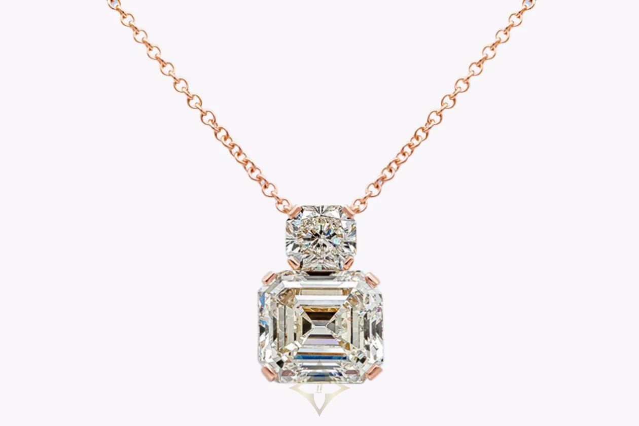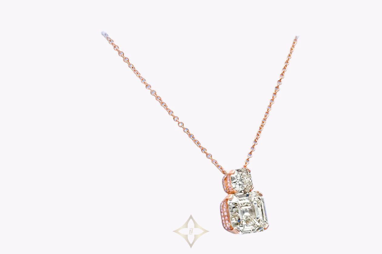 GIA Certified 7.81 Carats Emerald Cut Diamond Pendant Necklace in Rose Gold | New York 🇺🇸