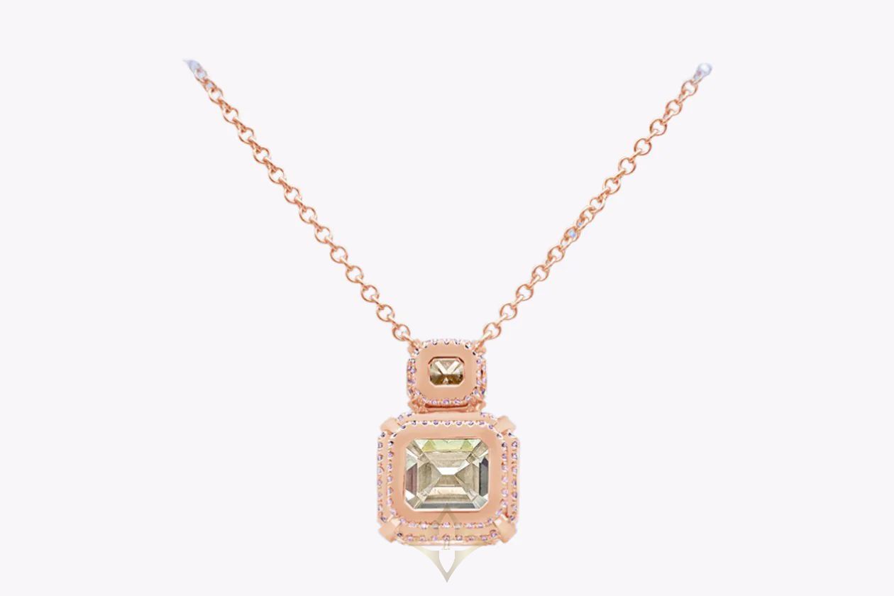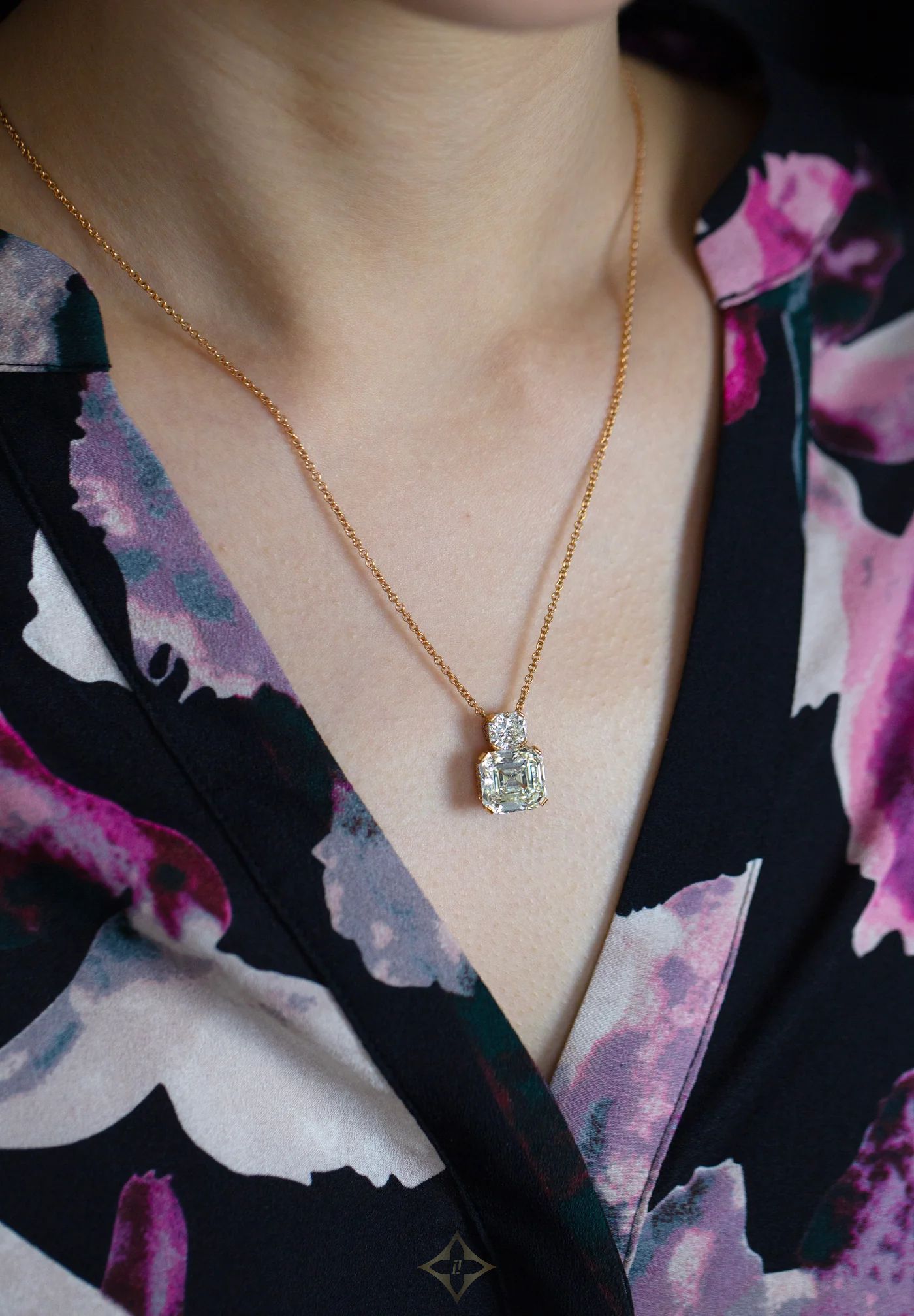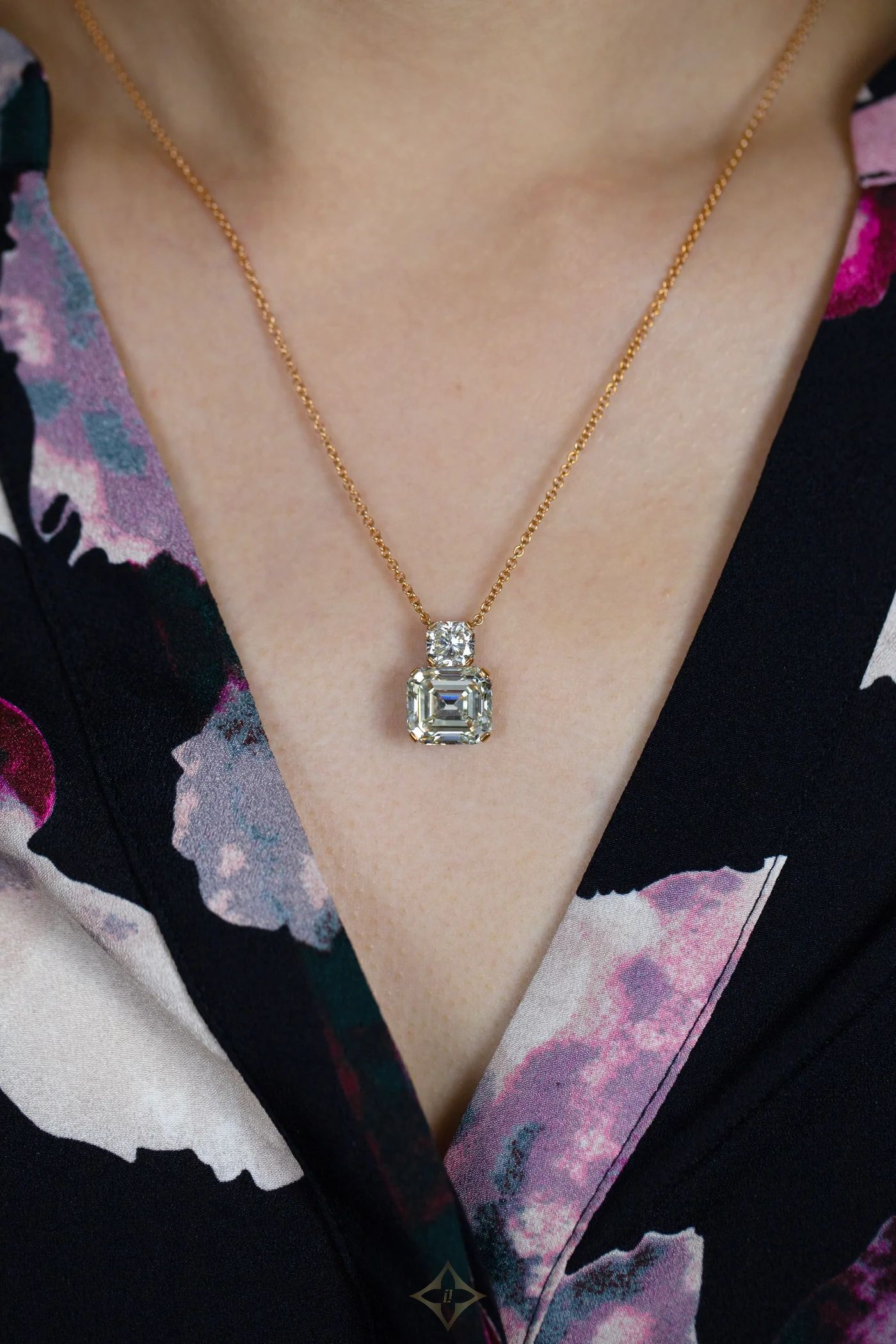 GIA Certified 7.81 Carats Emerald Cut Diamond Pendant Necklace in Rose Gold | New York 🇺🇸