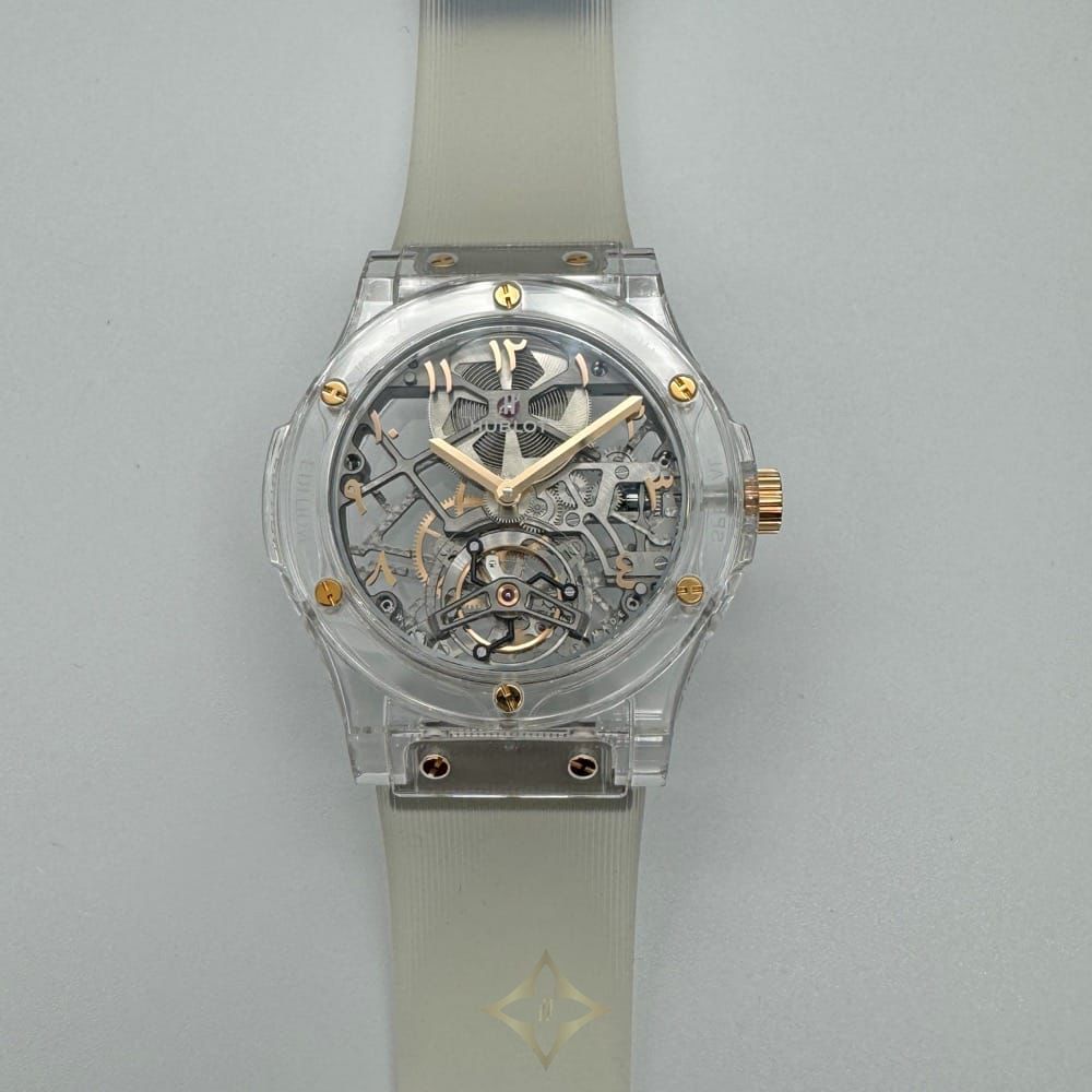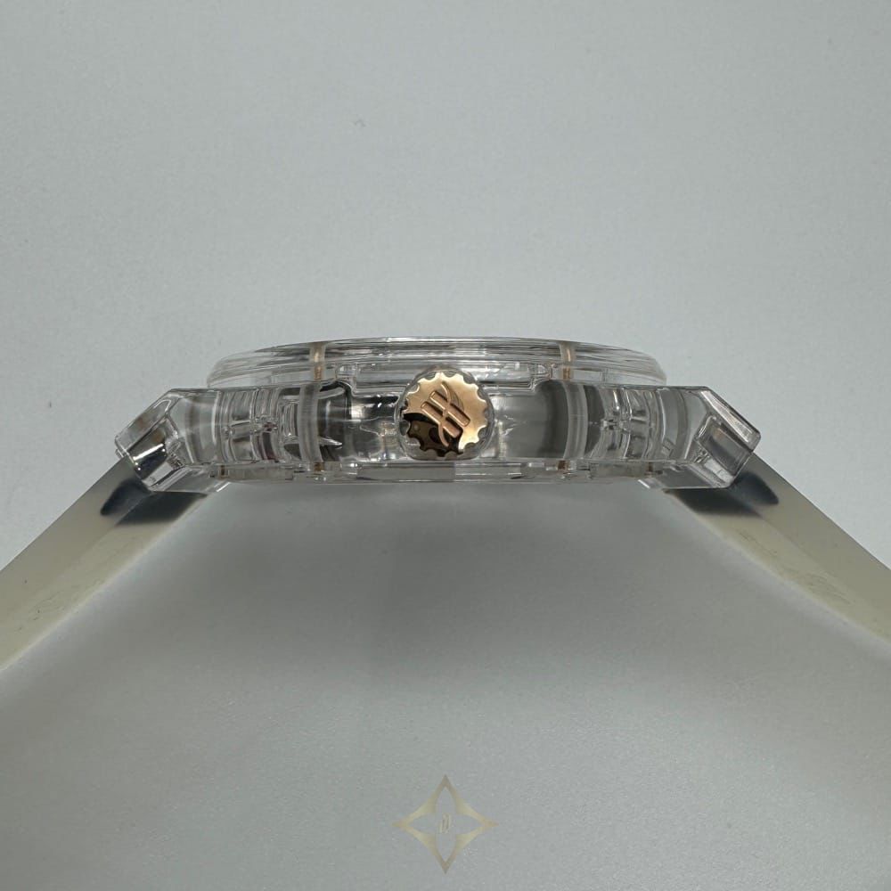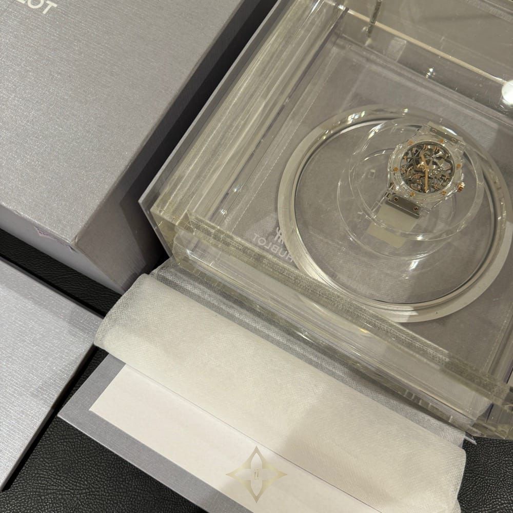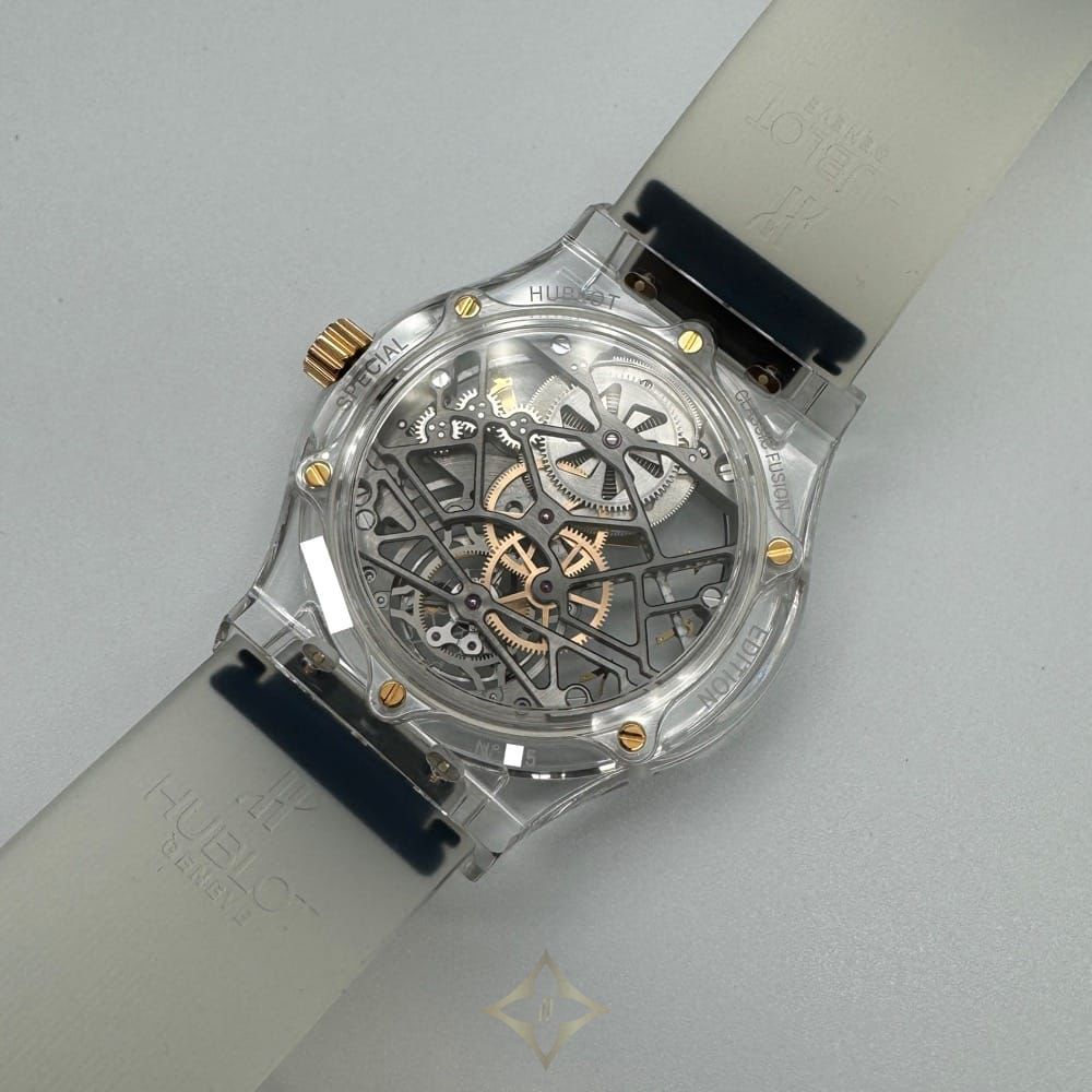Hublot Classic Fusion Sapphire Crystal Arabic Dial 505.JX.0120.RT Limited to 5 pieces Collection: Classic Fusion Model Reference: 505.JX.0120.RT Case/Size: Sapphire / 45mm Dial: Skeleton Movement: Manual winding Functions: Hours, Minutes, Chronograph Specificity: Limited to 5 pieces only! Condition / Year: Like New / -- Box / Papers: Yes / Yes PRICE: CHF 81,200Ω VAT ——— K2Luxury STORE ADDRESS Place du Molard 5, 1204 Genève, Switzerland Phone: +41 79 871 25 10 WhatsApp: +41 79 871 25 10 Email: contact@k2luxury.ch