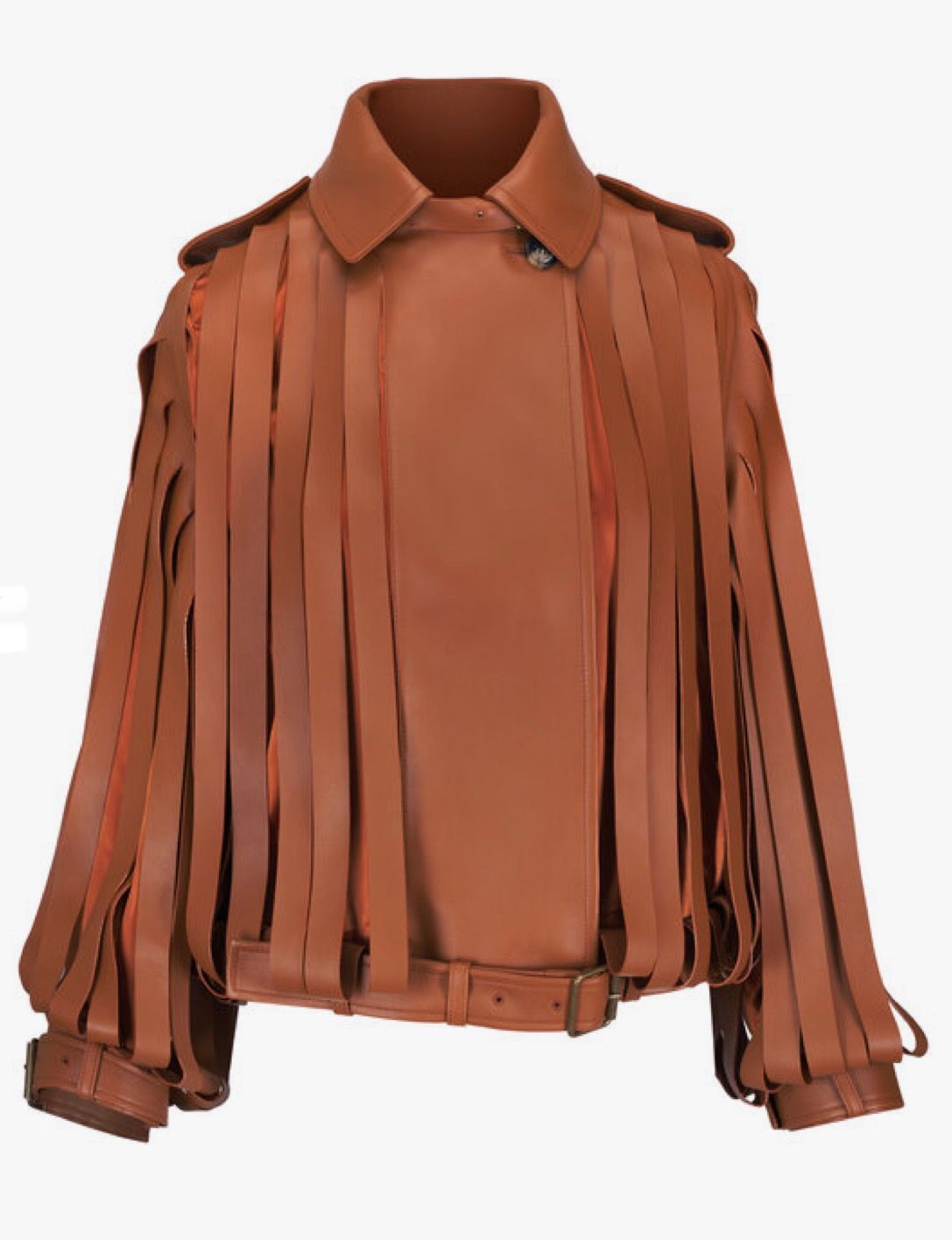 Tan Ribbon Cutout Leather Jacket