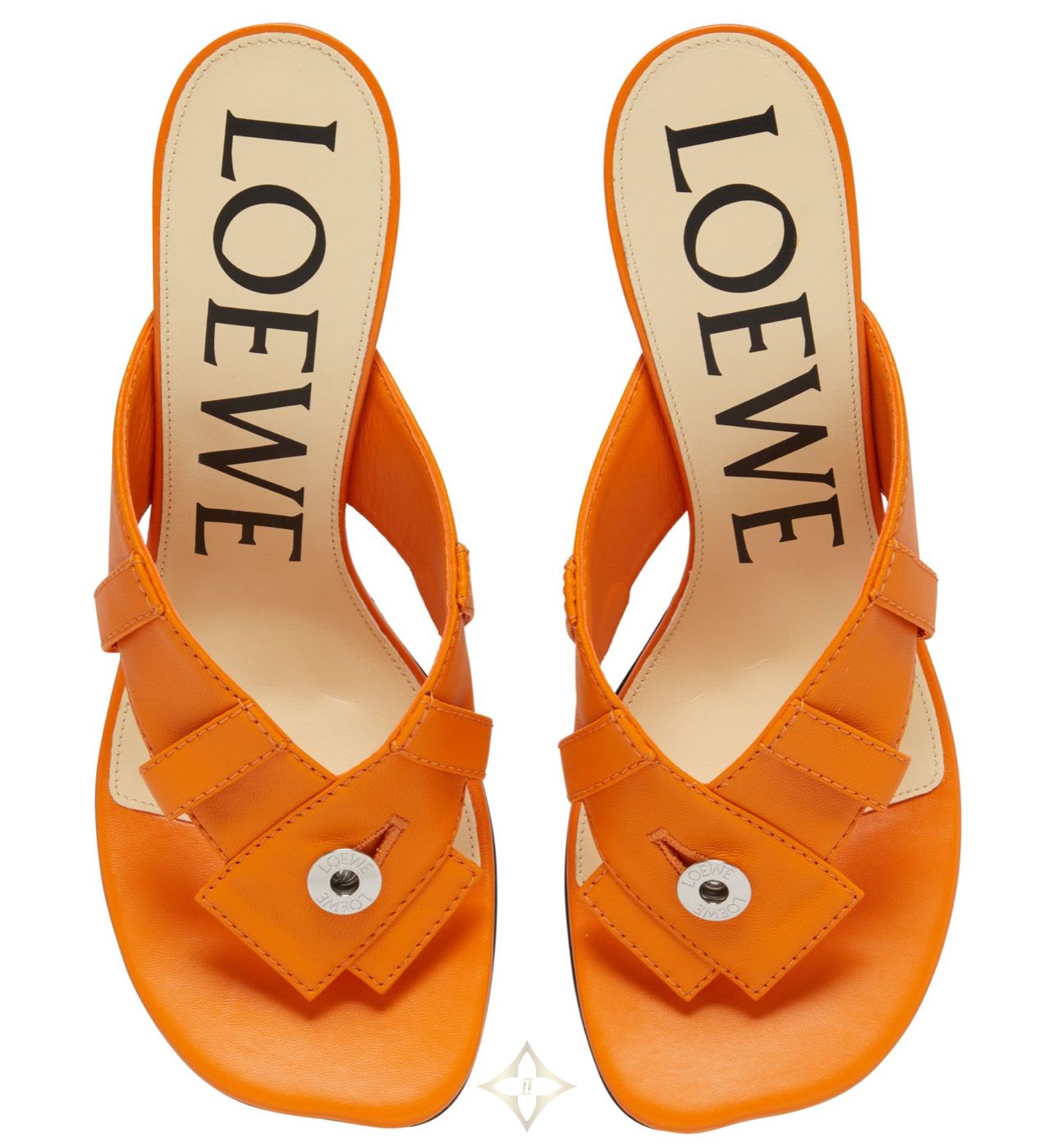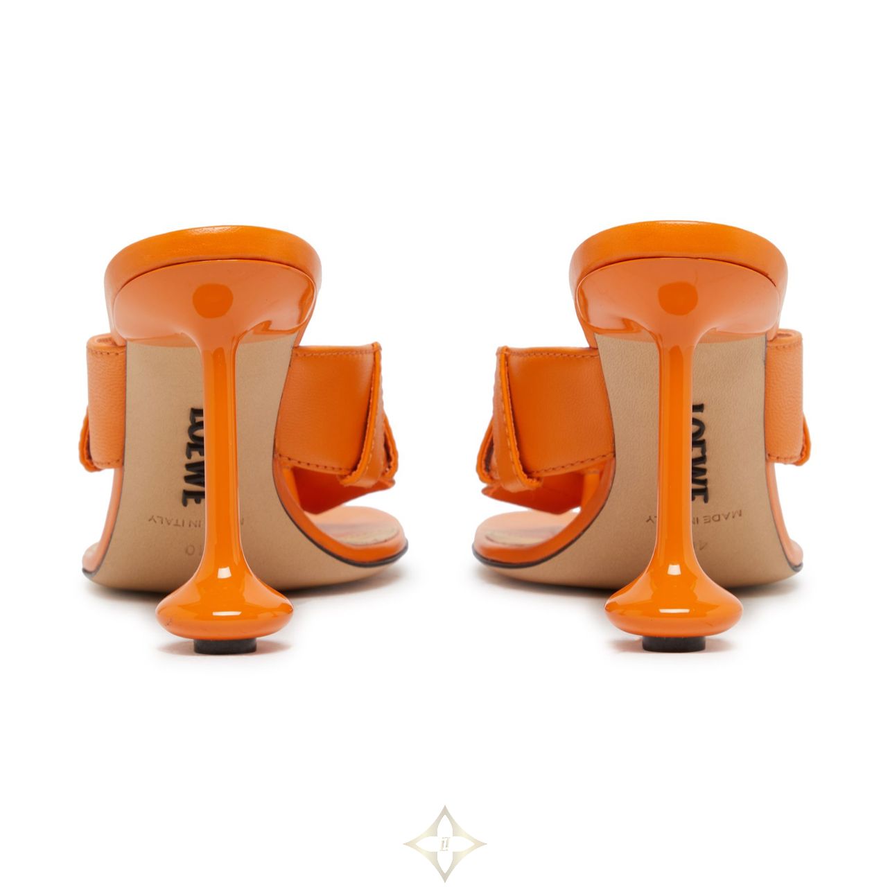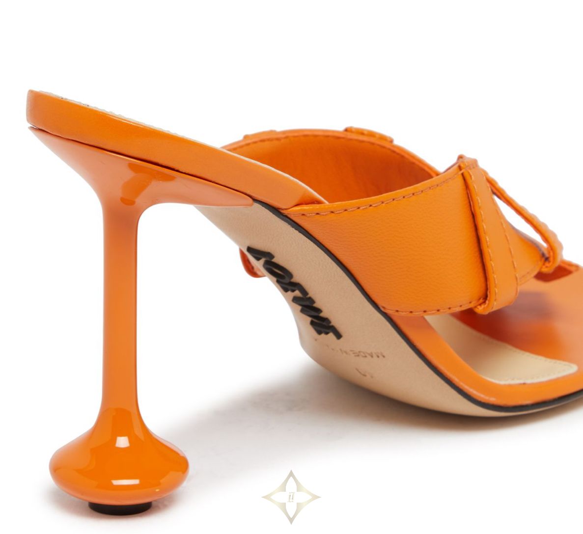 DESCRIPTION : visible stitching, high heel, front logo, embossed logo, contrasting logo, logo at the back, printed logo, sandals & slides, open round toe, contrasting sole.