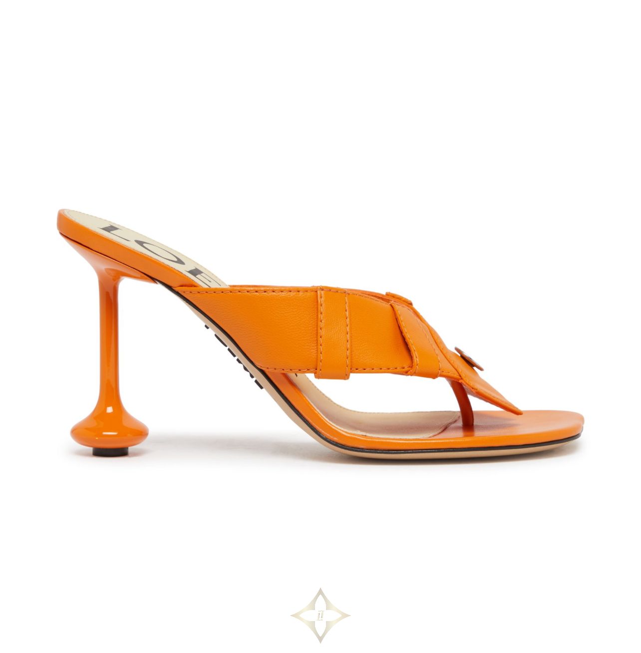 Loewe's Toy panta toe post sandal 90 is a chic and stylish sandal with visible stitching and a high heel. It features a front logo and embossed logo, with a contrasting logo at the back. These sandals have an open round toe and contrasting sole, with a logo-printed insole and unique heel.