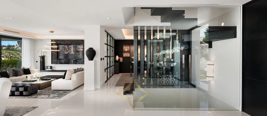 This exceptional villa is located in Nueva Andalucia, Marbella, within the prestigious Malaga region on the celebrated Costa del Sol. Positioned on a generous 1,500m² plot along the first line of a renowned golf course, this property embodies luxury and refined living. The villa boasts an impressive total built area of 840m², with 540m² of elegantly appointed interiors and an extensive 300m² of terraces, ideal for enjoying the Mediterranean lifestyle.
