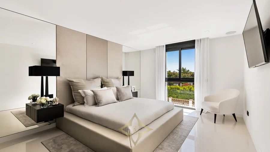 Designed and constructed to the highest specifications, the property features six spacious bedrooms and six en-suite bathrooms, including a sumptuous master suite that offers a private oasis with its own spa-like bathroom. The contemporary Italian designer kitchen is fitted with premium Gaggenau appliances, seamlessly flowing into a bright and airy hall that sets an inviting tone throughout the home. Additional amenities such as double glazing, a sophisticated home automation system, air conditioning, and a walk-in closet contribute to the villa’s excellent condition and offer unparalleled comfort and convenience.