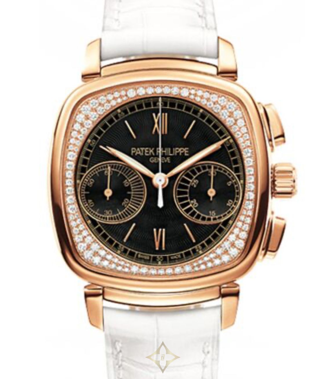 One year warranty for all watches. Preowned-7071R-010 Patek Philippe Complicated chronograph 18K Rose Gold & Diamonds Lady's Watch