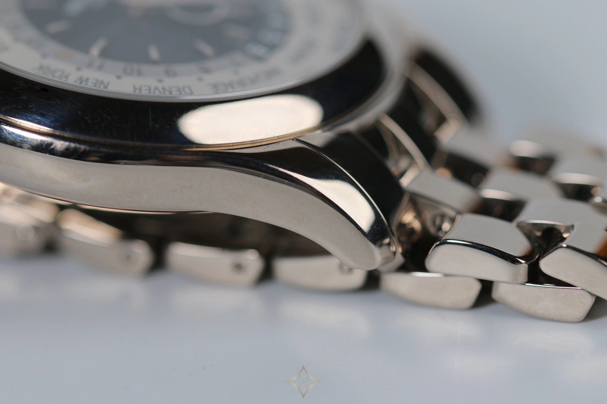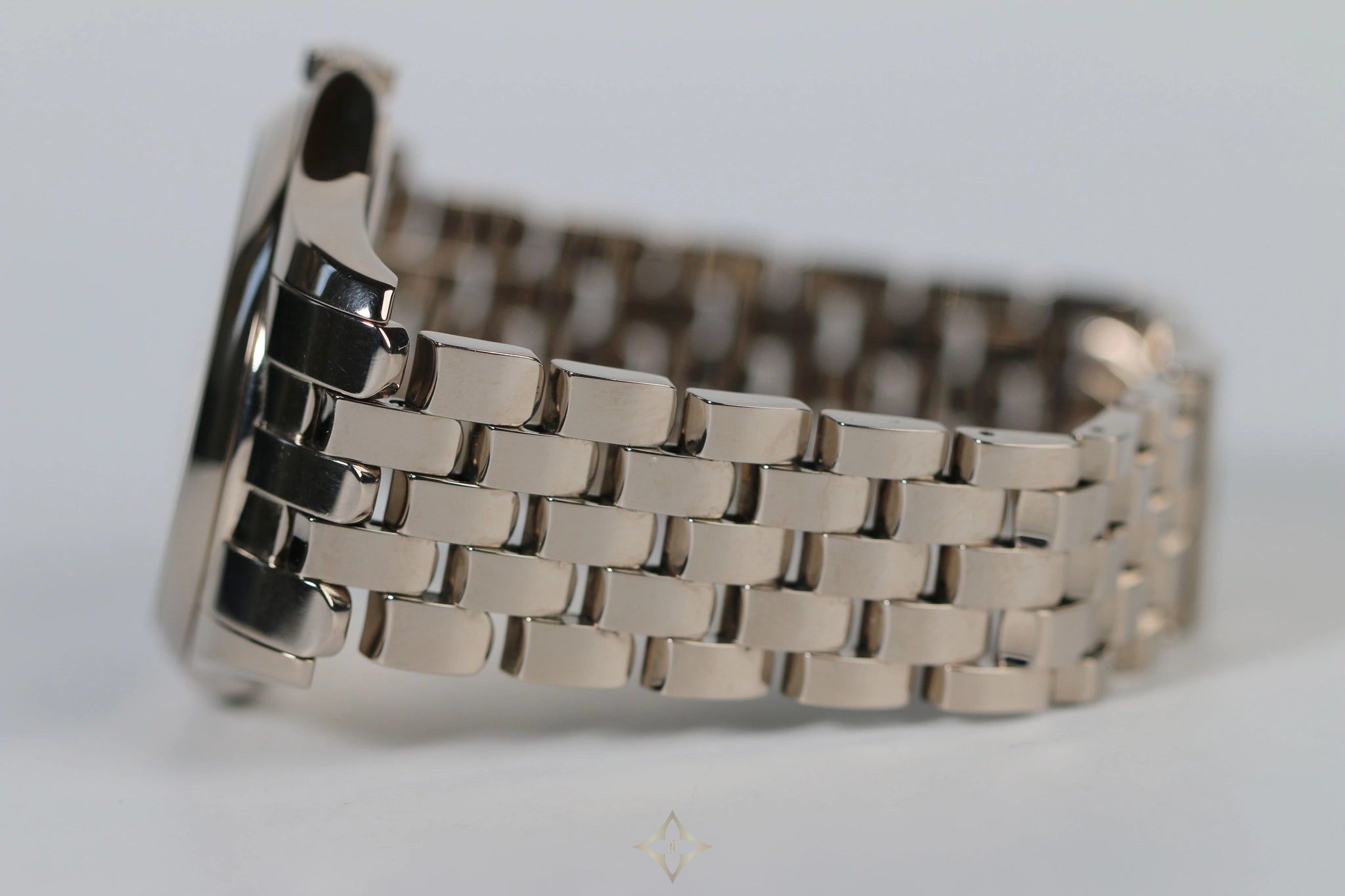 The World Time 5130/1G-011 stands out for its iconic complication and rarity, particularly thanks to its integrated white gold bracelet, a highly prized feature among connoisseurs. Purchasing a Patek Philippe World Time means investing in a luxury watch with international appeal, a timeless collector's item that combines elegance, innovation, and heritage. Its refined aesthetics and versatility make it an ideal choice for those who travel or wish to explore the world, while affirming their appreciation for horological excellence.