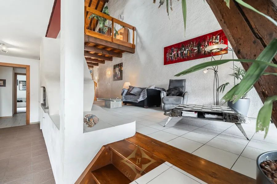 Nothing here follows a classic pattern. This village house, located in the heart of the peaceful village of Gilly, is distinguished by bold architecture and spectacular volumes. Designed for those looking for space, light and character, it is organized on several half-levels, offering a rare interior dynamic.