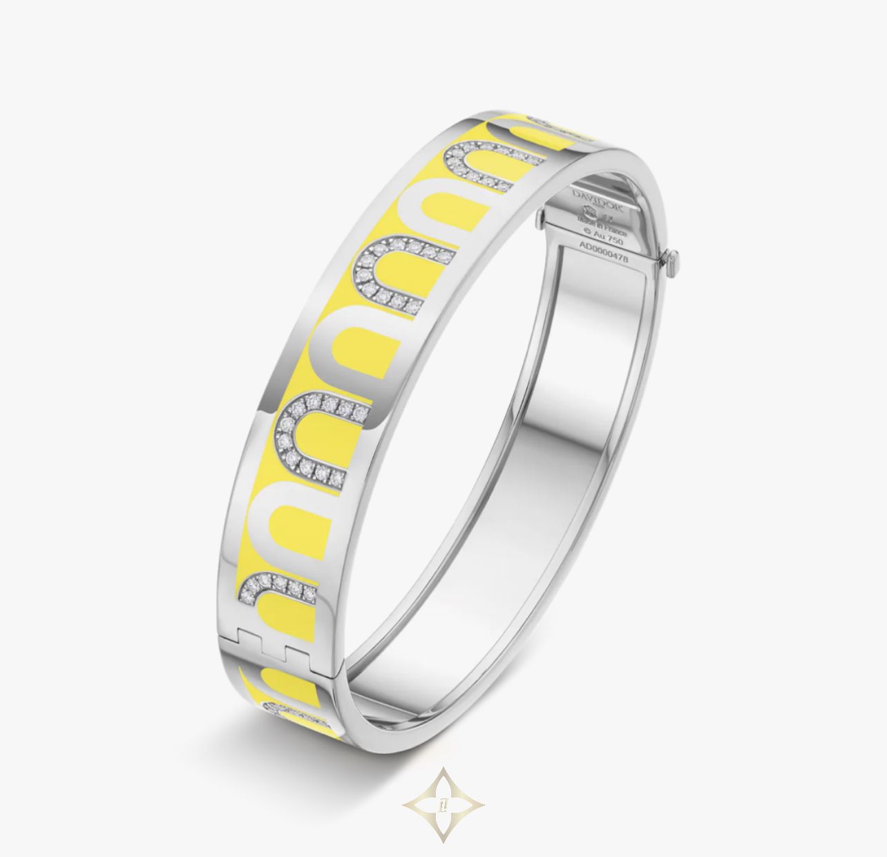 L’Arc de DAVIDOR Bangle GM, 18k White Gold with Lacquered Ceramic and Colonnato Diamonds