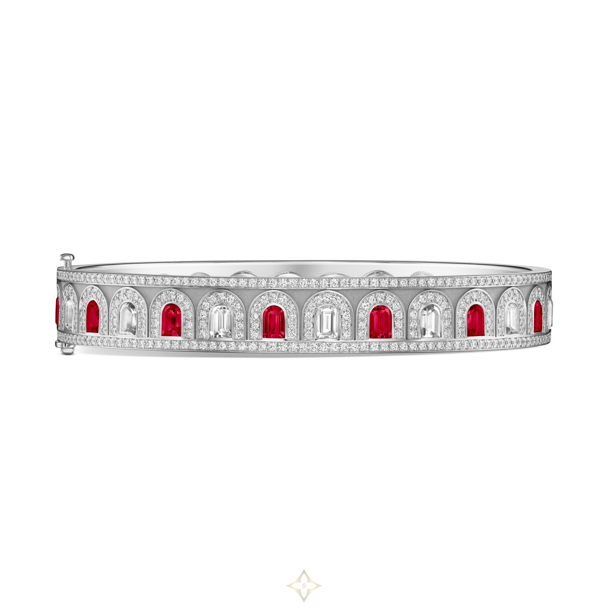 L'Arc Deco Bangle in Platinum with DAVIDOR Arch Cut Diamonds DAVIDOR Arch Cut Rubies and Brilliant Diamonds | Paris 🇫🇷