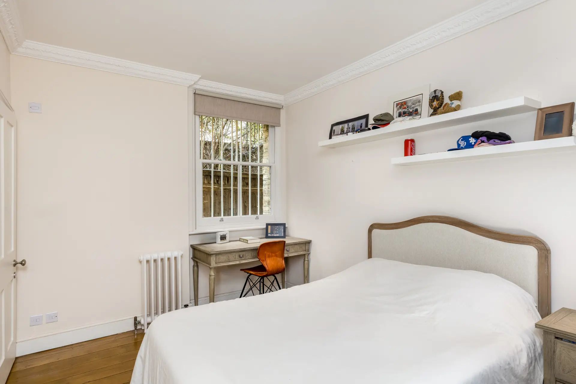 Occupying the lower and ground floors of a handsome Victorian villa, this three-bedroom apartment was once a 19th-century vicarage, offering expansive floor space, soaring ceiling heights and period character rarely found elsewhere. The home sits in the Aldridge Road and Westbourne Conservation Area, a collection of elegant nineteenth-century streets developed during the westward expansion of London’s underground network. Many of the original façades remain intact, lending the area its distinctive stucco-fronted villas and leafy pavements.