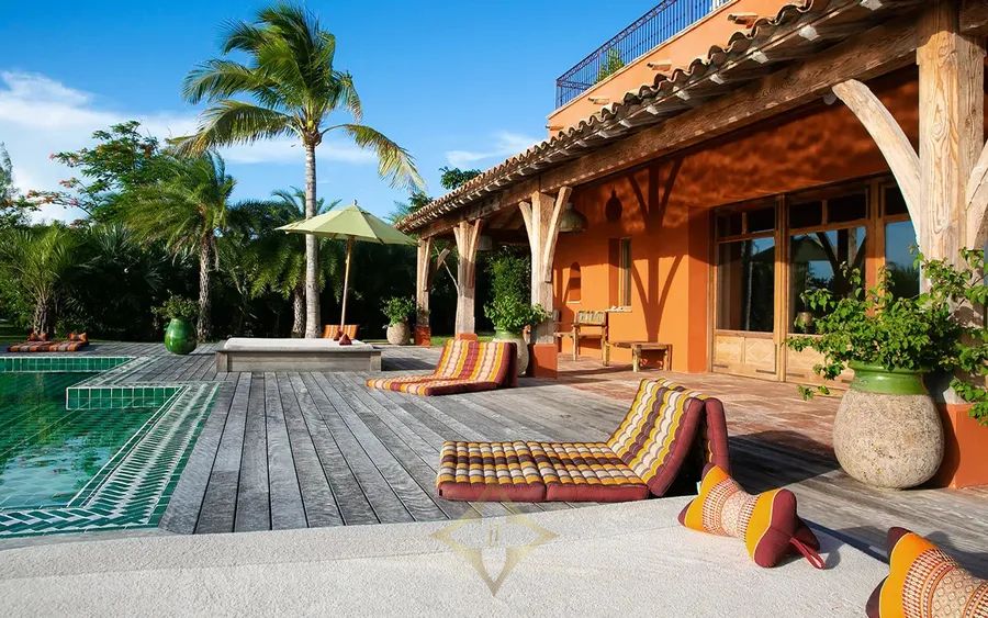 L’Hacienda offers an array of amenities to ensure an unforgettable experience. Accommodations include the main villa and two bungalows. Indulge in the luxury of a 16-person movie theatre, a grand piano in the great room, and leisure activities such as billiards, yoga, and massage therapy. The infinity pool beckons for refreshing dips, while the private marina awaits to embark on aquatic adventures.