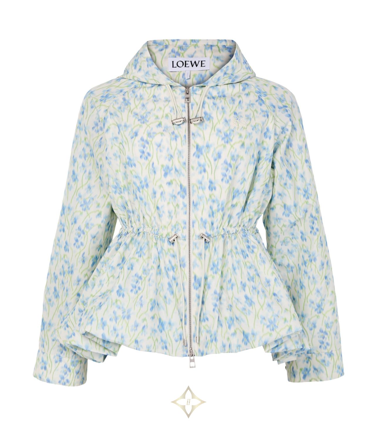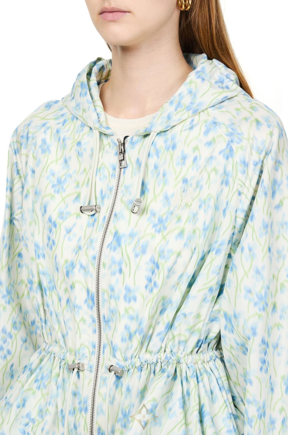 Introducing Loewe's hooded jacket in silk, a masterpiece of modern style. This regular-fit, short-length jacket features a vibrant floral print and a practical zipper closure. The long sleeves and hood offer comfort while the silk material adds a touch of elegance, perfect for versatile styling.