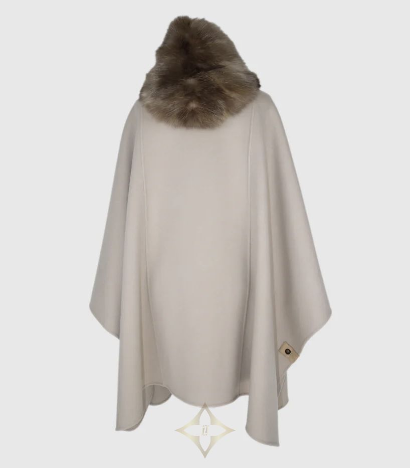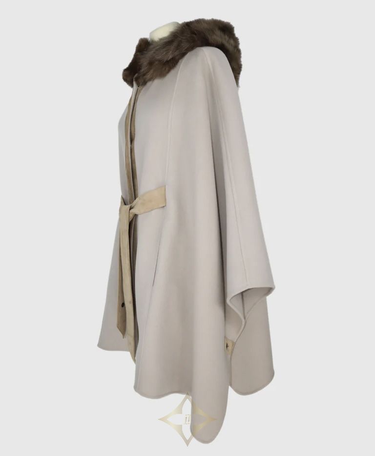 LORO PIANA BEIGE CAPE W/ HOODED FUR for Sale | Dubai 🇦🇪