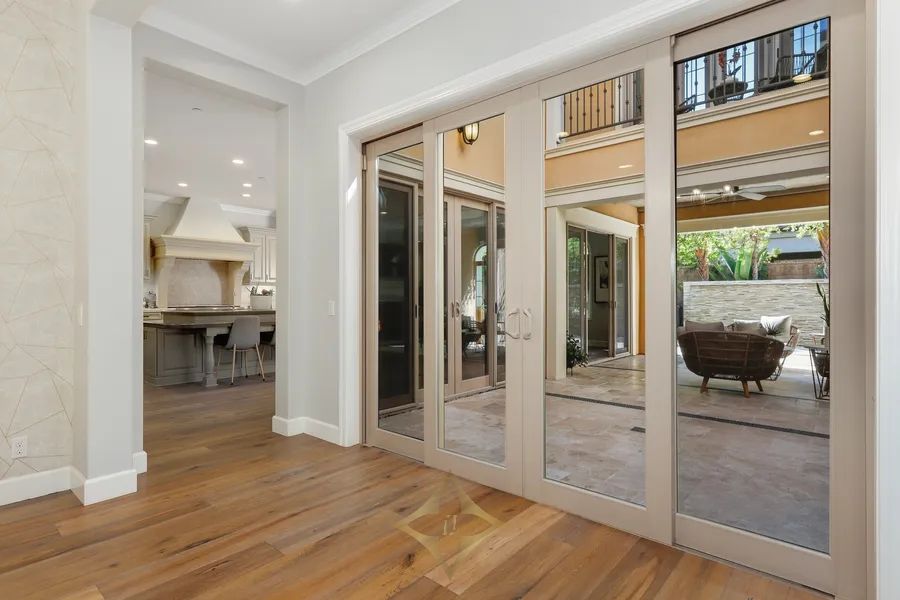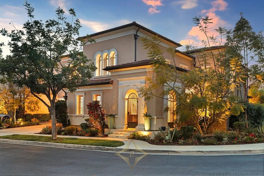 Welcome to the most sought-after floor plan in the prestigious Messina enclave in the guard gated Groves of Orchard Hills—an entertainer’s dream and a luxurious retreat all in one. This exquisite 6-bedroom, 6.5-bathroom residence spans over 4,200 sq. ft. and rests on a unique 6,479 sq. ft. corner lot, offering exceptional privacy, elegance, and seamless indoor-outdoor living—with four of the six bedrooms and a spacious bonus room located upstairs. From the moment you arrive, a private gated entry and beautifully landscaped courtyard create a dramatic first impression. Step inside to discover a grand foyer with a striking circular iron staircase and richly appointed interiors throughout. The main level features a separate casita with a private entrance and kitchenette, ideal for multigenerational living or guests. A spacious great room flows effortlessly into a covered California room, ideal for seamless entertaining and everyday relaxation. The chef’s kitchen is a showstopper—equipped with professional-grade appliances, a large center island with bar seating, granite countertops, and natural stone backsplash. A formal dining area adds sophistication for holiday dinners and special gatherings. Upstairs, the expansive primary suite boasts a private balcony, spa-inspired bathroom, and generous walk-in closet. All bedrooms feature ensuite bathrooms for added comfort and privacy. Additional highlights include whole house soft water system with reverse osmosis, new tankless water heater, designer paint, hardwood flooring, upgraded carpet, crown molding, solar power, and custom window treatments. Step outside to your personal oasis featuring a tranquil water wall feature, outdoor fireplace, built-in BBQ, and lush foliage—perfect for year-round entertaining. Enjoy the resort-style amenities of Orchard Hills, including pools, clubhouses, tennis courts, and walking trails. Located within walking distance to the Orchard Hills Shopping Center and award-winning K-8 Orchard Hills School, with easy access to parks, preserves, and major freeways.