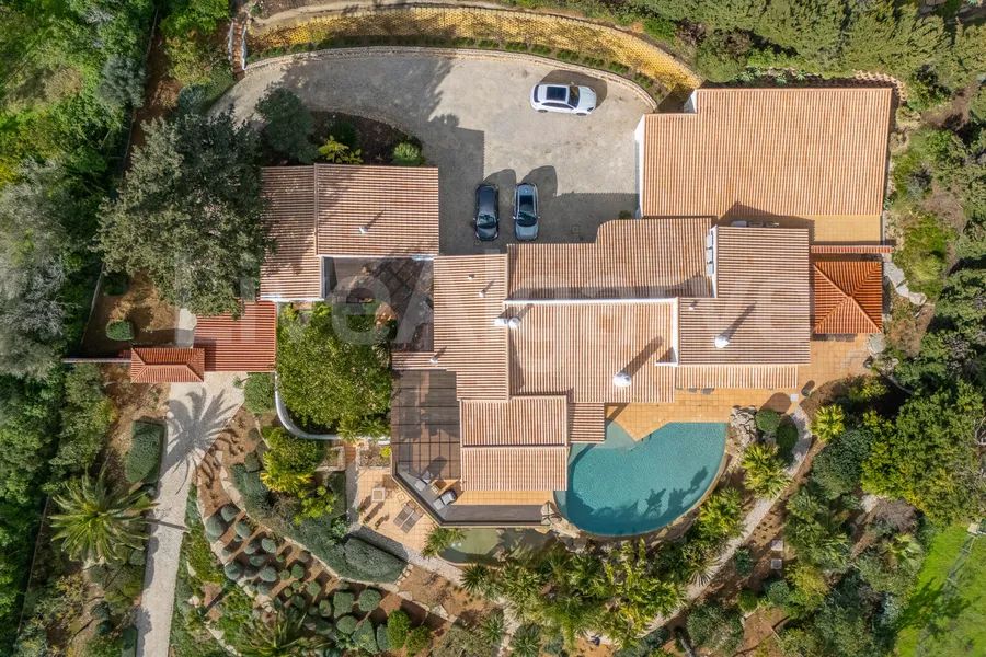 The estate spans 11,420 m² and allows the residence to maintain a sense of autonomy while remaining fully connected to municipal infrastructure. Privacy is achieved through distance, orientation, and thoughtful landscaping.
