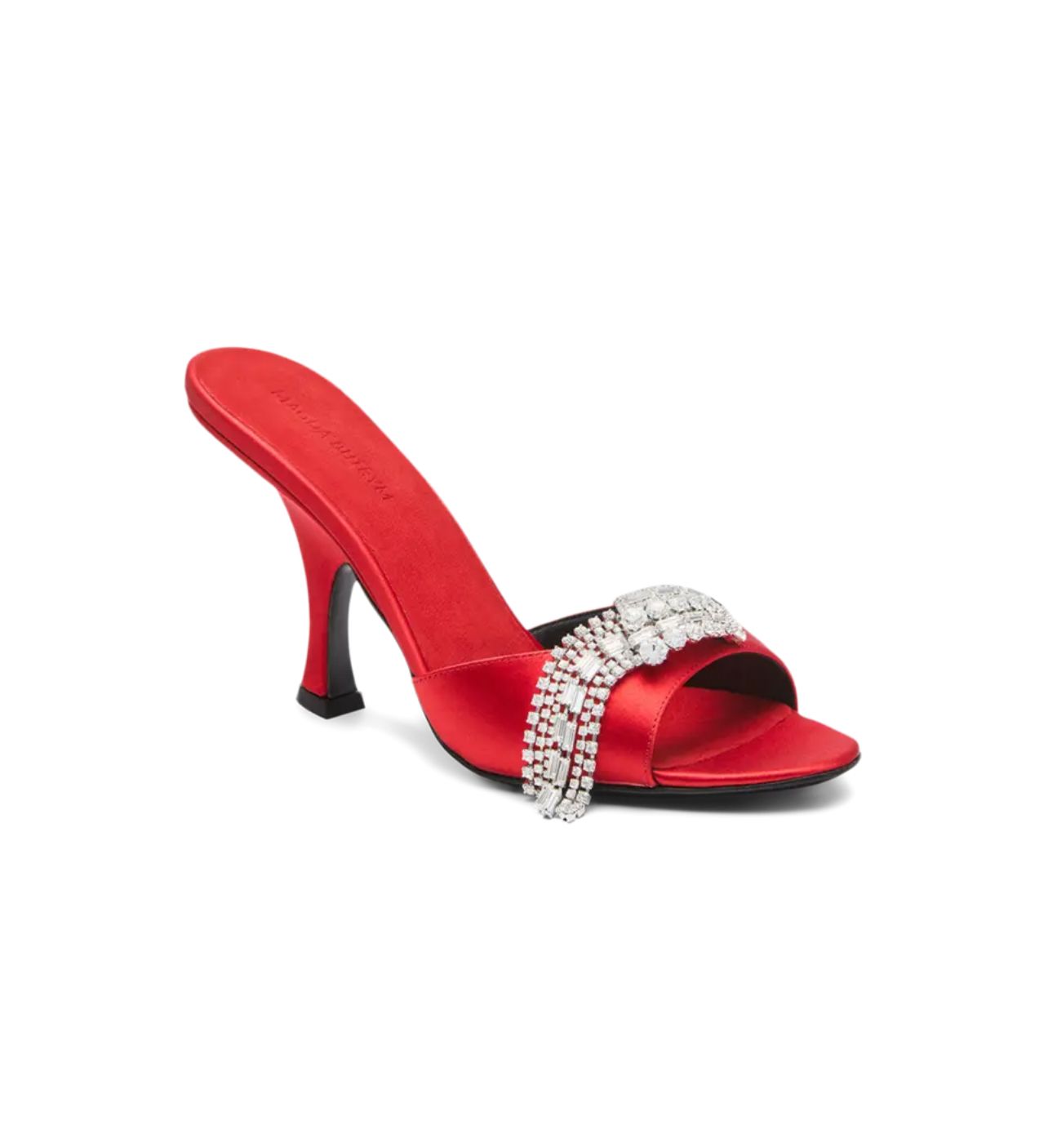 Bringing a symphony of dancing reflections of rhinestones on satin exterior, this Satin Crystal High Heel Mule by Magda Butrym is nothing less than a work of art. Designed in a silhouette that grabs the reflections of light on its crystal strand, the mules go with everything, from long dresses to formal suits and ballroom attire.