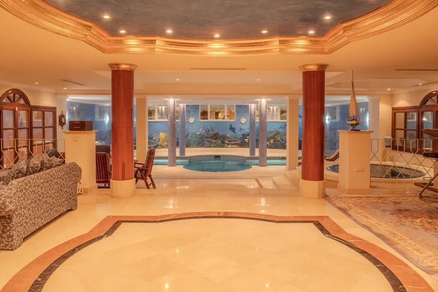 Set gracefully in Nueva Andalucía, Marbella,this west-facing landmark estate commands an exceptional 3,400 m² plot and immediately impresses with its noble presence and refined proportions. Inside, 1,727 m² of beautifully crafted interiors unfold beneath soaring double-height ceilings, enhanced by intricate woodwork and hand-finished marble that reflect enduring quality and artisanal excellence.