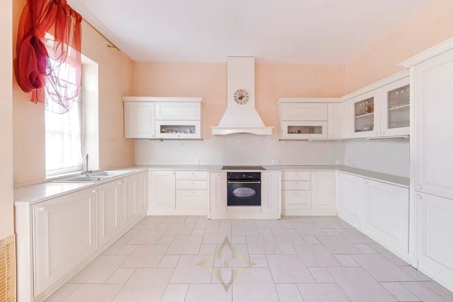 The main dominant feature of the house is the impressive entrance atrium with a marble staircase and a stained glass ceiling reaching up to the second floor. Stained glass windows also decorate the front façade and allow natural lighting of the central part of the villa. The spacious living room has direct access to the sunny south-facing terrace overlooking the meticulously maintained garden and surrounding greenery. On this floor there are also two rooms, a dining room, a fully equipped kitchen with a smaller dining room for the staff, a guest room with its own facilities and a separate apartment unit for the house staff.