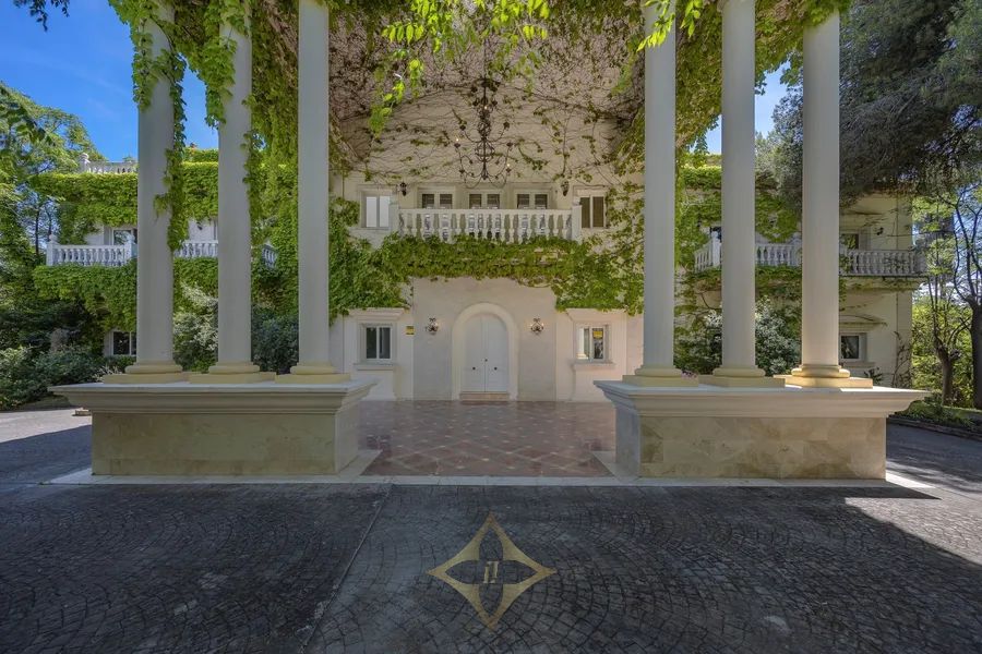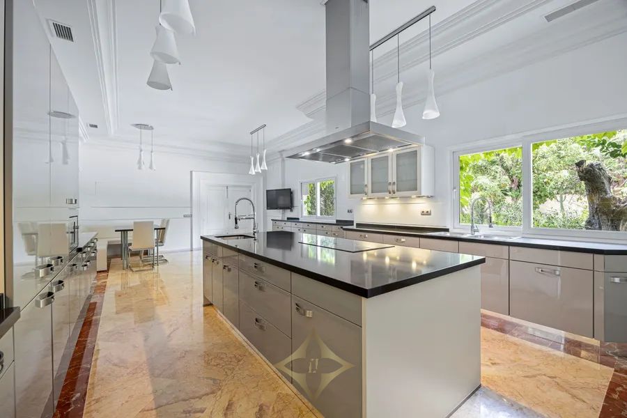 The estate sits on over 4,000 square meters of private grounds, and offers more than 1.500 square meters of interior space laid out across three levels. The main floor is designed for entertaining, with generous reception rooms, elegant ceilings, and natural light pouring in through large windows that open to the terraces and garden beyond.